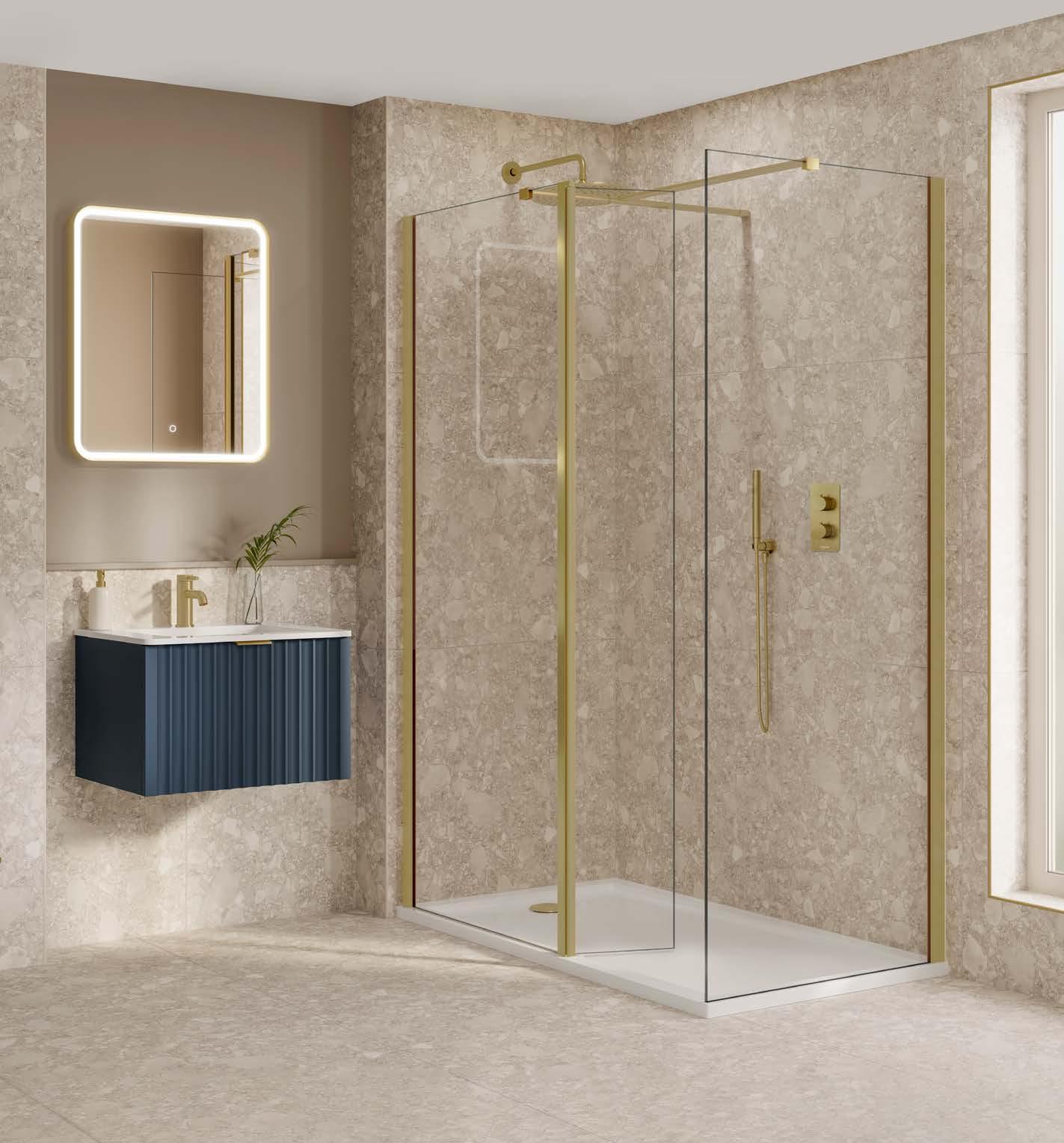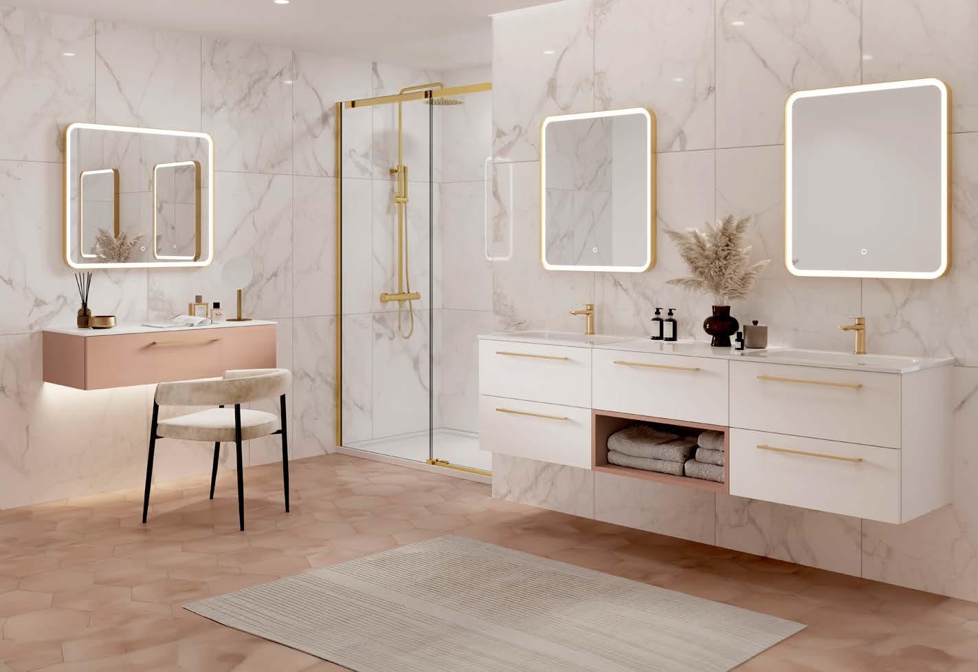 For example, Mirrors, Brassware, Accessories, Handles, Radiators, Shower Valves & Shower Enclosures are available in Brushed Brass.