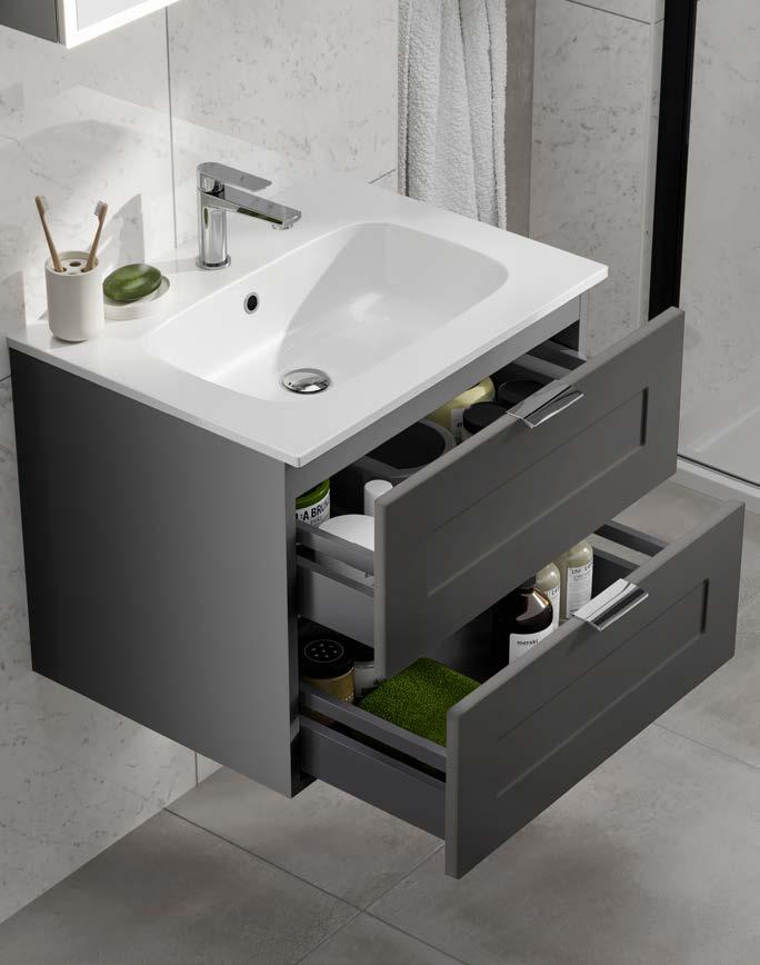 Available in 60 and 80cm widths, in both floor and wall mounted options, ten unit colours and a range of handle options, you can create your perfect space.