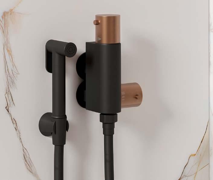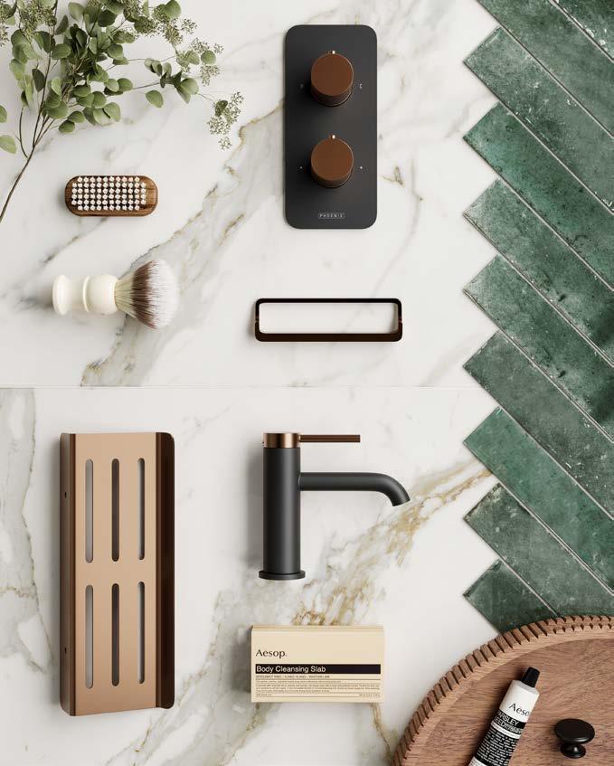 Combining the matt finishes of Black and Brushed Bronze and five handle choices to create a striking look. This full range of stylish brassware will lift the aesthetic of your modern bathroom.