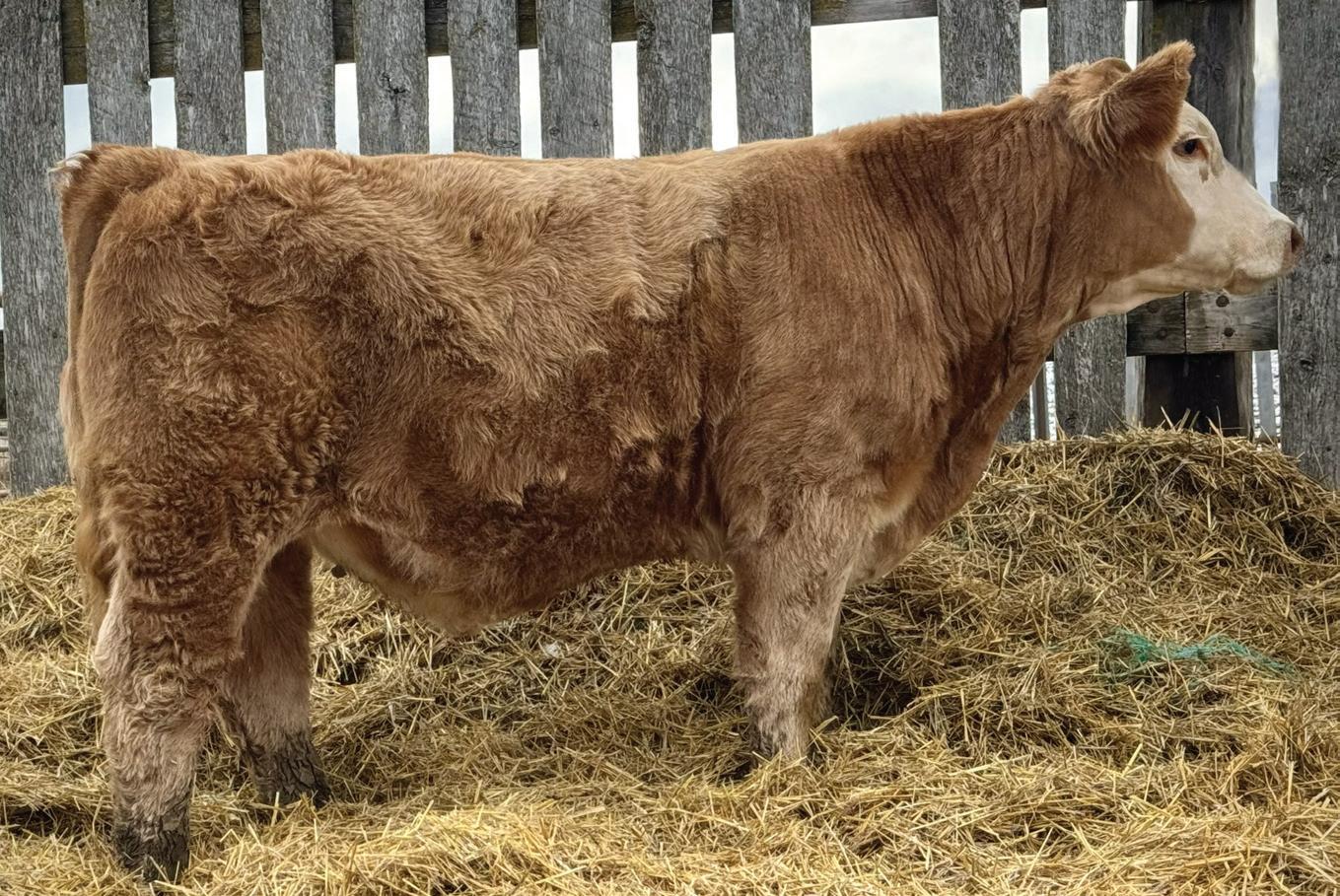 Her name is “Lady Jolene”. This fancy young lady has been a standout, in the pasture, all summer long. She will go on to work well in your pasture too or if you would like to deck her out, she could go to town and compete with the city girls. This long red classy heifer is highly attractive and her dam is also a beautiful female. This purebred heifer, will appeal to all ‘Gelbvieh enthusiasts!”, like purebred breeders, Junior member’s Gelbvieh projects and 4-H members, that would like pretty “Gelbvieh” female, in their club. Check out “Lady Jolene” at the Fair grounds in Moose Jaw , on Sale day.... Then head to the “Grant Hall Hotel” to make your bid. Above all, enjoy your day of “Gelbvieh fun!”