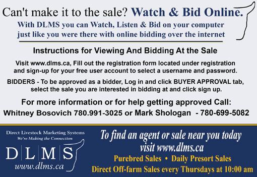 Terms of sale are cash or cheque at par, payable sale day. Release of livestock will not be given without satisfactory settlement. Registration papers will be transferred upon full payment.