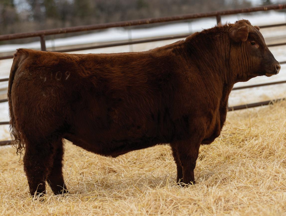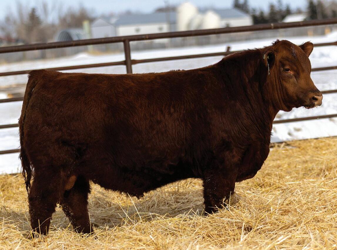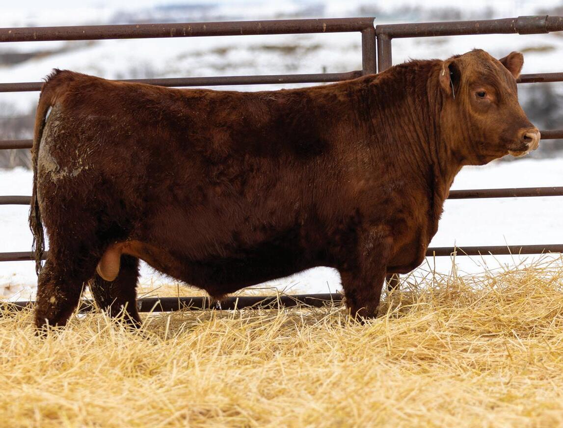 We are once again excited to host the sale at our ranch headquarters at Briercrest SK. 2025 marks our 31st annual bull sale, it has truly been a privilege meeting many great friends over the years. The support and trust in our program as well as all the repeat customers means the world to us. This years sale also marks 10 years working with the crew at Merit and we couldn’t ask for better people and cattle to work with. We invite you to come tour the bulls anytime prior to the sale. We would love to tour the bull pen with you as well as show you their dams and sisters. We know our cows and will do our best to help you select a bull to suit your needs. If you cannot make the sale, please feel free to call any of us or our staf to discuss your needs and help you make your purchase. Satisfaction is completely guaranteed, and your bids will be handled professionally and confdentially. The sale will also be broadcast live on DLMS.ca with internet bidding available.
