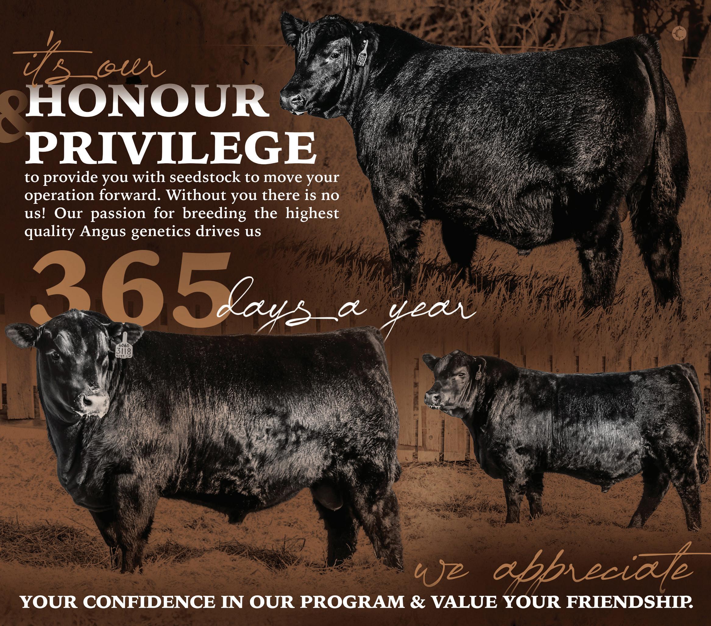 We appreciate our repeat customers and want to thank them for their continued support with $100 discount on each bull they purchase in the 2025 sale.