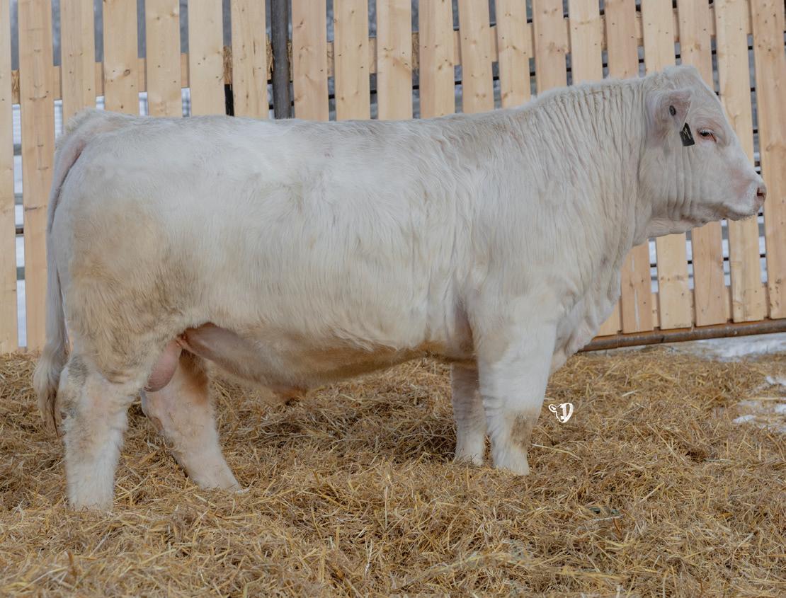 Hot Commodity is our senior herd sire that we acquired with the CSS herd. He is a proven bull with exceptional foot quality. Hot Commodity will add frame and length to any calf crop. His sons are pen favourites of many cattlemen. His daughters in the herd are great uddered, hard milking females.