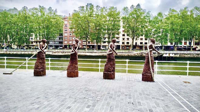MONUMENTO A LAS SIRGUERAS EN BILBAO. ERAN LAS MUJERES QUE TIRABAN DE LAS EMBARCACIONES A TRAVÉS DE UNA SIRGA O CABO