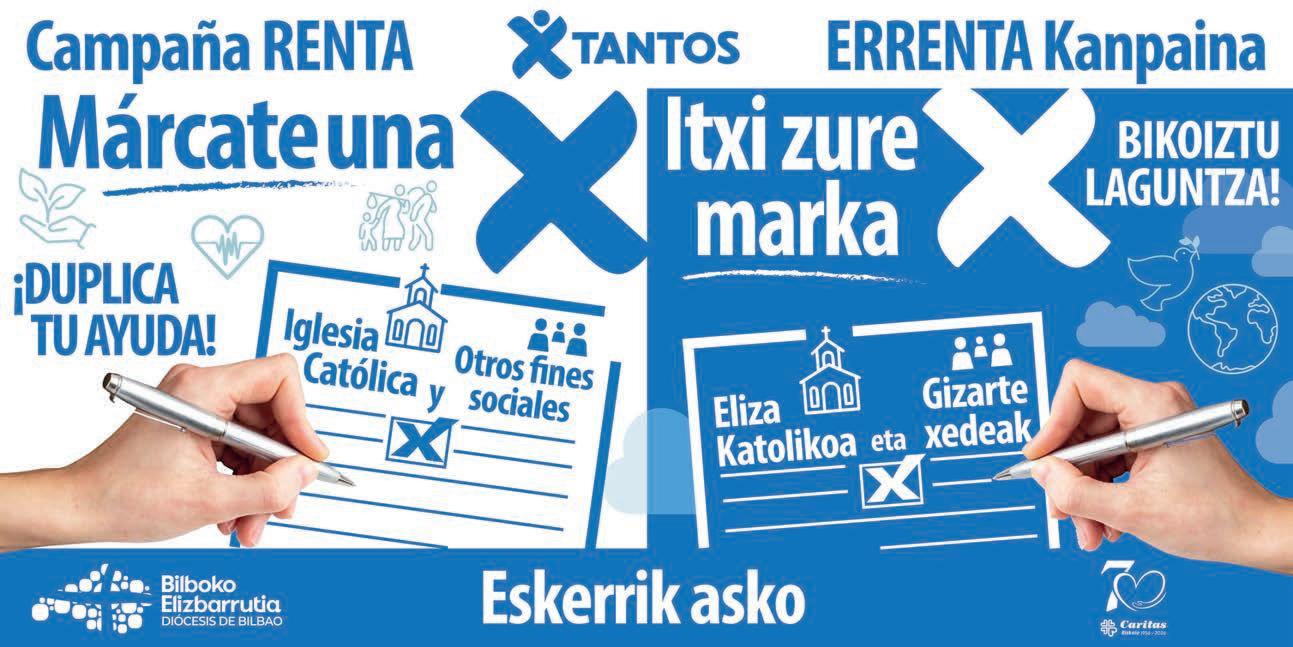—Se trata de un pequeño gesto que tiene grandes e importantes consecuencias, puesto que de esa ‘X’ depende que muchos proyectos de la diócesis de Bilbao y de Cáritas puedan desarrollarse beneficiando directamente a personas y familias que necesitan de nuestro acompañamiento. Es un compromiso religioso y social al mismo tiempo. Apelo a la solidaridad y generosidad de la comunidad cristiana de Bizkaia.
