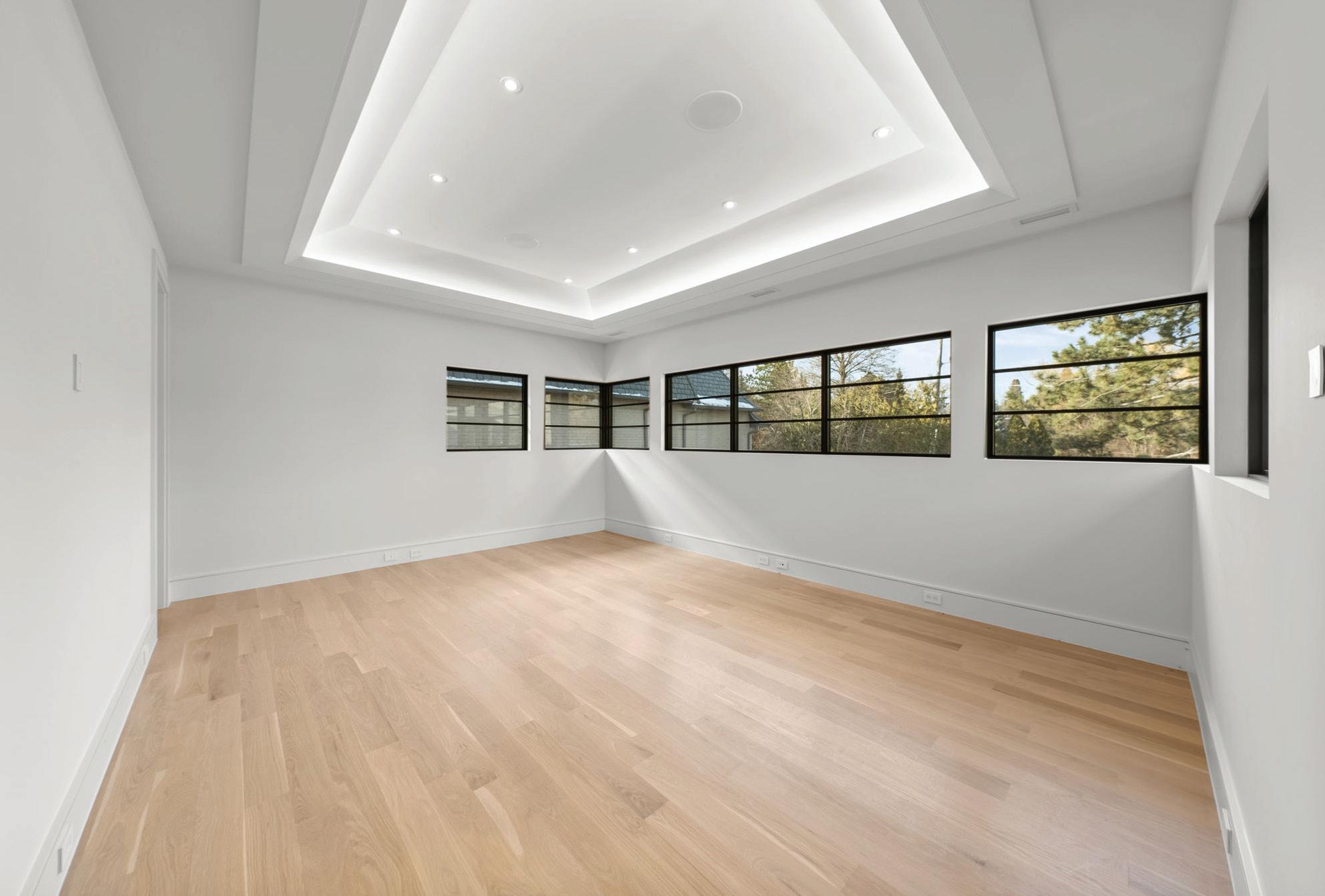 The Primary Suite delivers the essence of a luxurious retreat. Innovative in concept and distinct in design, the Primary suite boasts exquisitely crafted His and Her boudoirs as well as independently located His and Her ensuites. The custom white oak flooring ushers you through the primary suite which features a wall of windows and sliding double doors, giving you direct access to a capacious, private and tranquil upperlevel terrace. Beyond the double pocket doors awaits an additional space that hosts endless potential; over the glass railing the Family Room can be viewed, through the expansive windows that deliver copious amounts of natural light, the lush backyard is found.