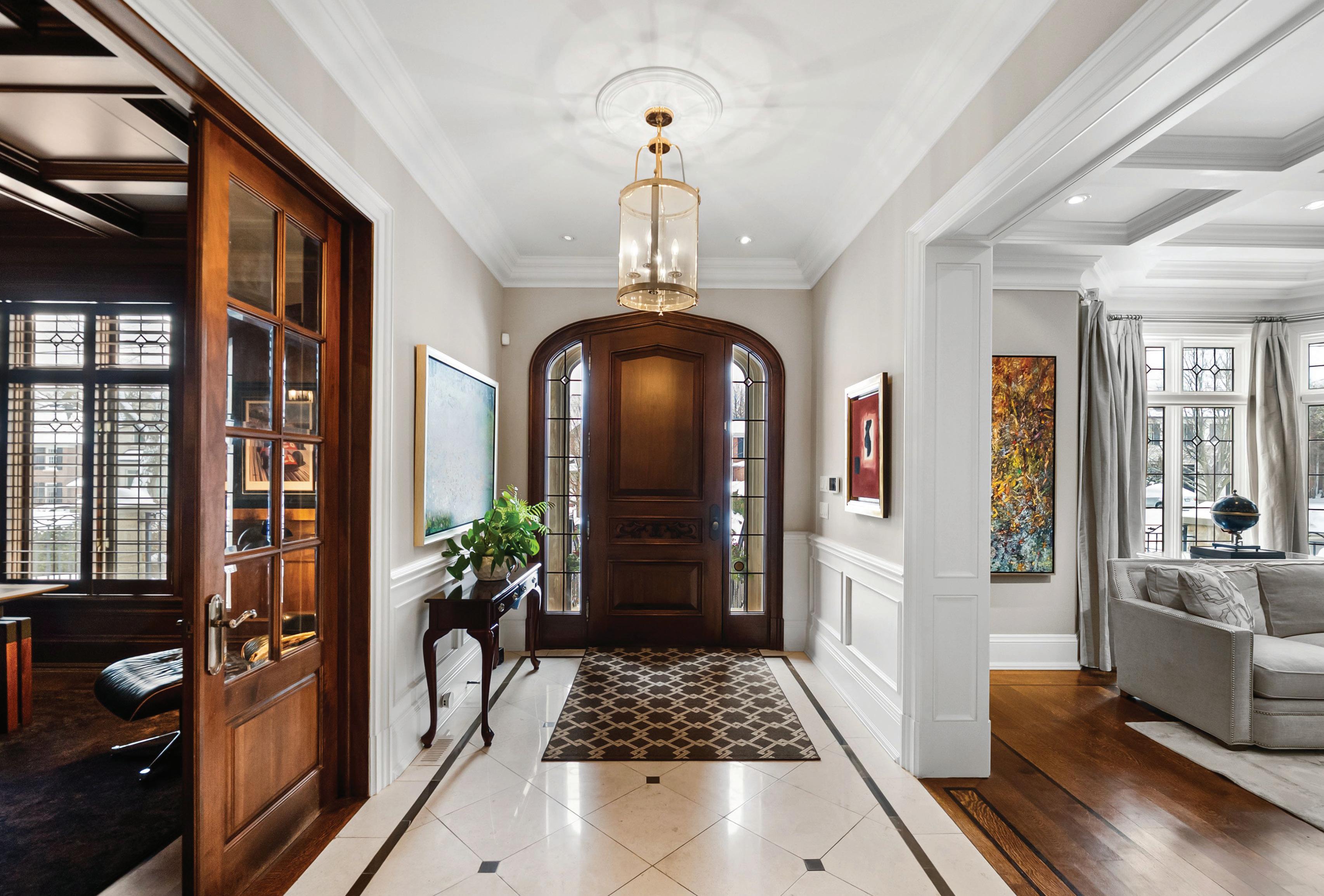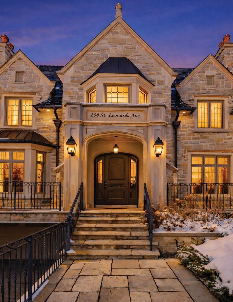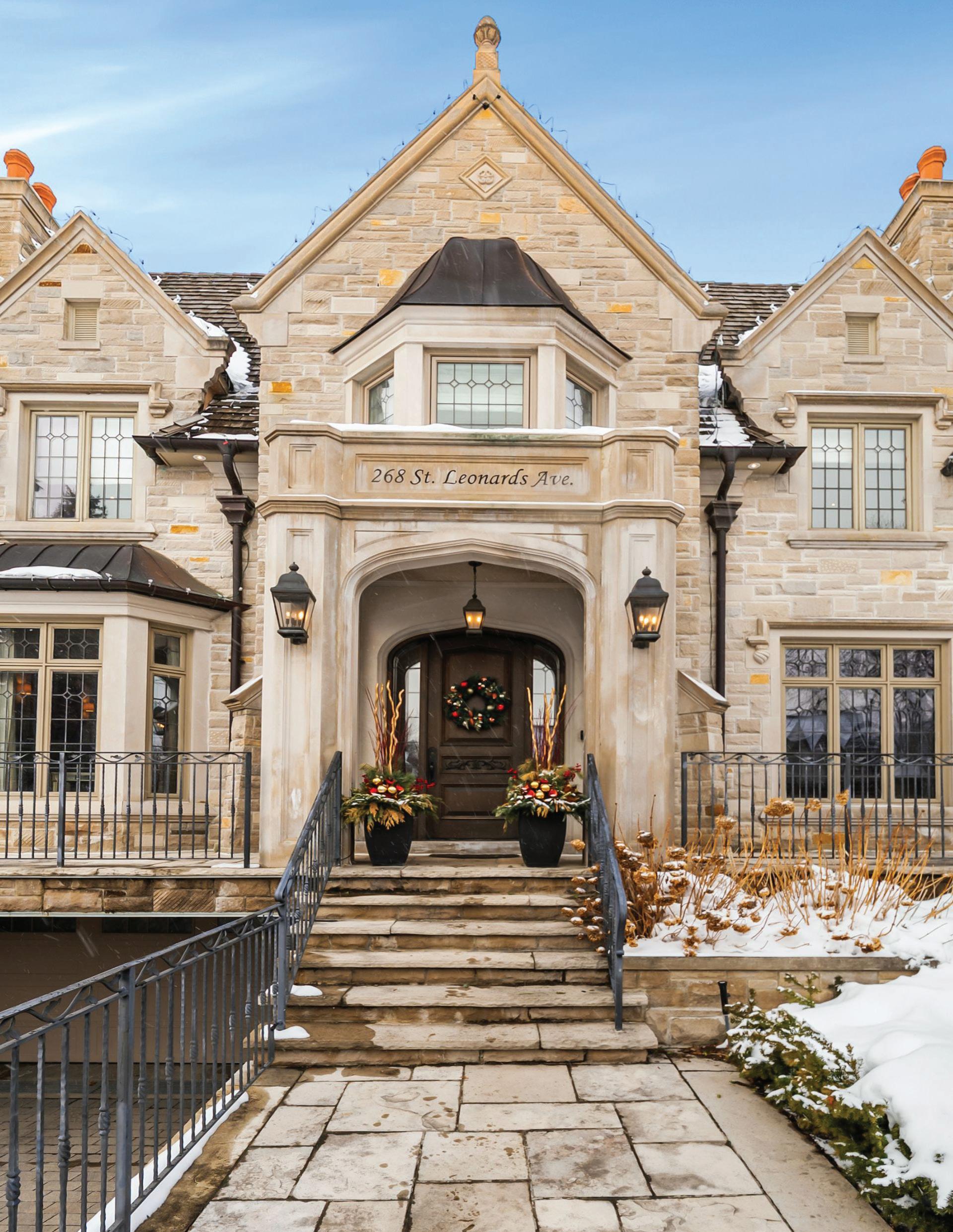 A rarely offered Lawrence Park residence of exceptional craftsmanship and architectural pedigree, available for the first time since 2012. Designed by renowned architect Lorne Rose with interiors by Carey Mudford, this distinguished Tudor-style home sits on a prime 50 x 150 ft lot and offers approximately 5,500 sq ft of beautifully finished living space. The striking Indiana limestone and brick façade, cedar shingle roof, leaded glass windows, copper detailing, and hand-crafted stone portico create timeless curb appeal. A heated driveway, steps, porch, and walkways ensure yearround comfort, complemented by mature landscaping, irrigation, exterior lighting, and integrated security. Inside, refined detailing defines every space, including 10ft ceilings on the main level, 9 ft ceilings above and below, heated marble floors, custom millwork, coffered ceilings, rich hardwood flooring, and sound-insulated construction. Principal rooms flow seamlessly for both elegant entertaining and everyday family living. The chef’s kitchen features premium appliances, bespoke cabinetry, and opens to an oversized family room with walk-out to a private stone terrace. The upper level offers generously proportioned bedrooms and spainspired baths, highlighted by a luxurious primary retreat with vaulted ceilings, marble finishes, steam shower, and private outdoor access. The fully finished lower level with radiant heated floors provides exceptional versatility, including a large recreation room with walk-out, wet bar, wine cellar, guest or nanny suite, and extensive storage. Thoughtfully maintained and continuously upgraded, the home delivers enduring quality and modern reliability. Complete with a rare three-car secure garage, this is an exceptional opportunity just moments to Toronto’s top schools, the Granite Club, Bayview Avenue, Highway 401, and surrounding parks, a truly special offering in one of the city’s most coveted family neighbourhoods.