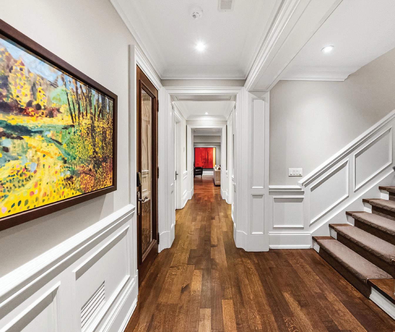 10 ft. ceiling heights throughout the main level, halogen pot lighting, quarter cut white oak flooring with Wenge inlay throughout, moulded ceiling throughout, sound insulated pipes and drain, heavy doors and heavy hardware, all water pipes are made of copper.