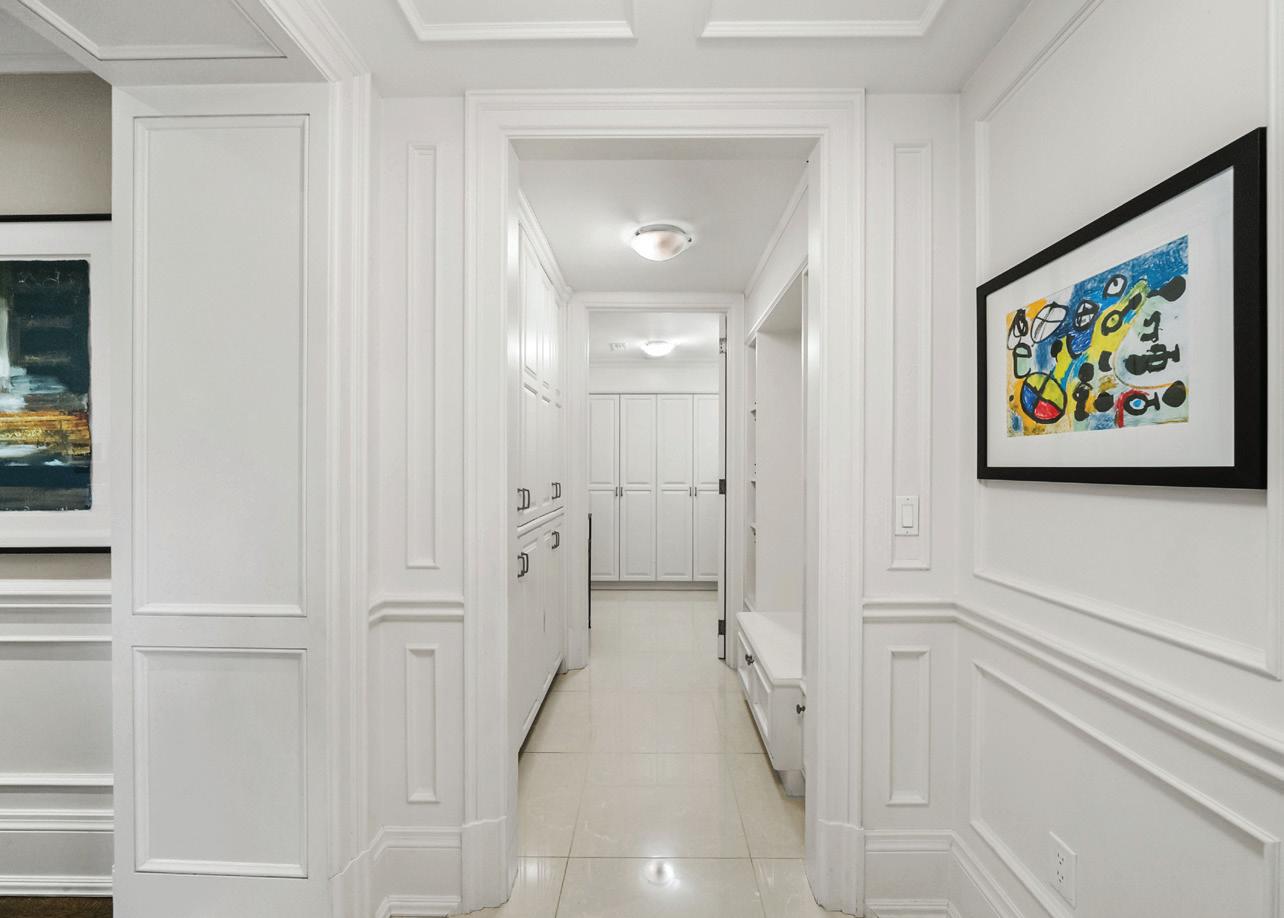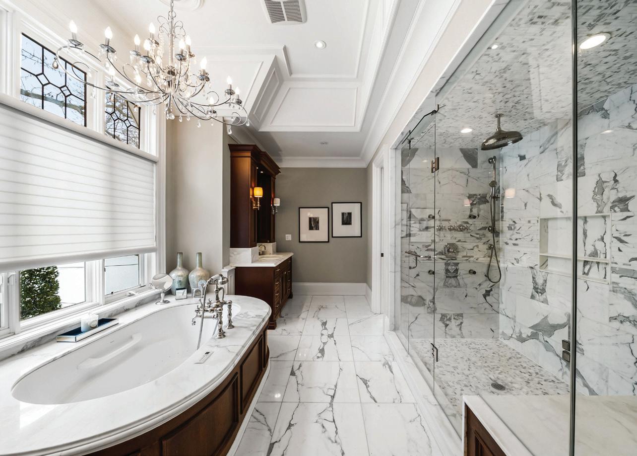 · Marble floor with marble inlay and water heated floor · Recessed panel wainscoting