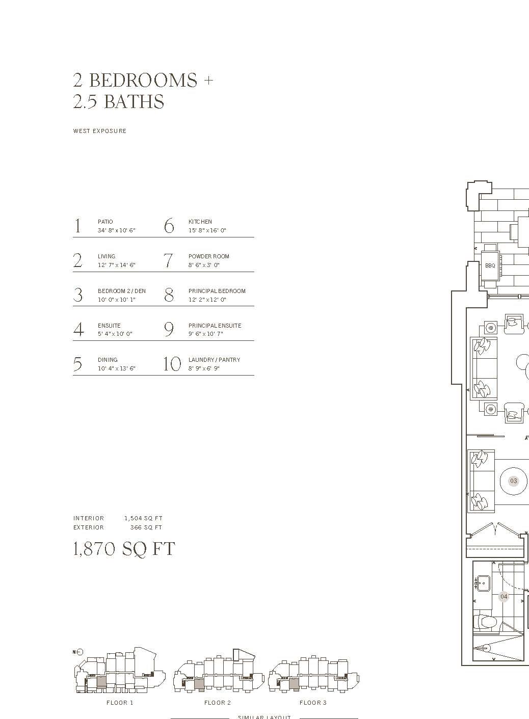 2 Bedrooms Plus - West Exposure (Bayview or Corner)