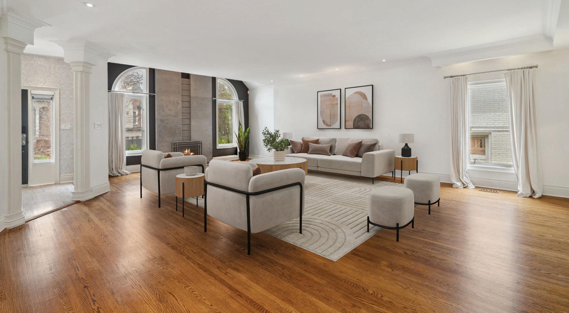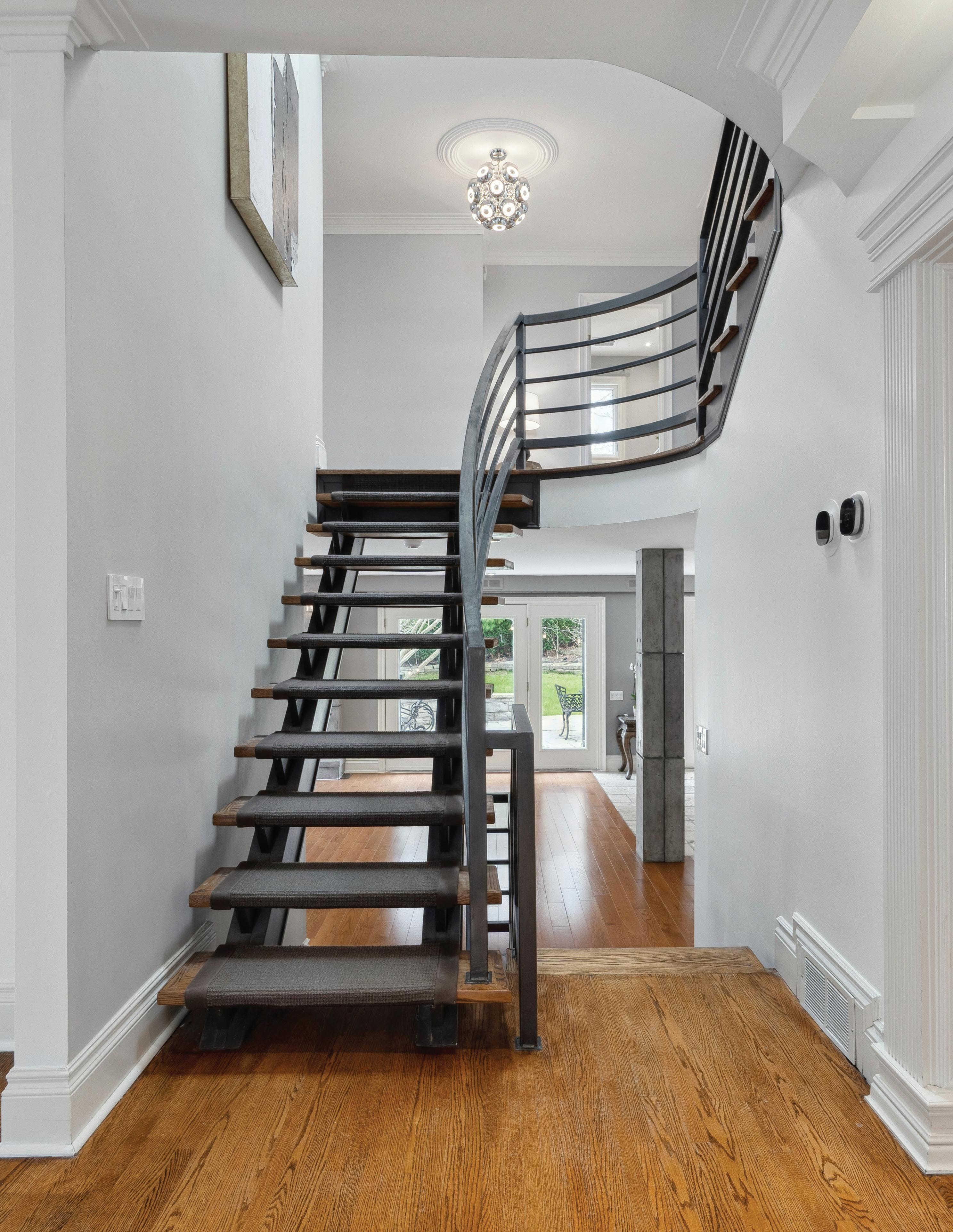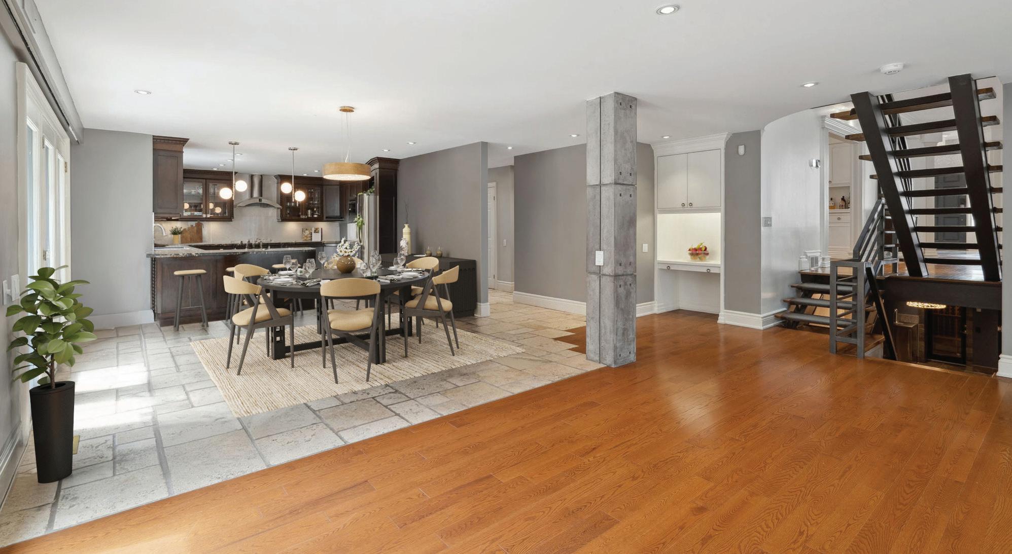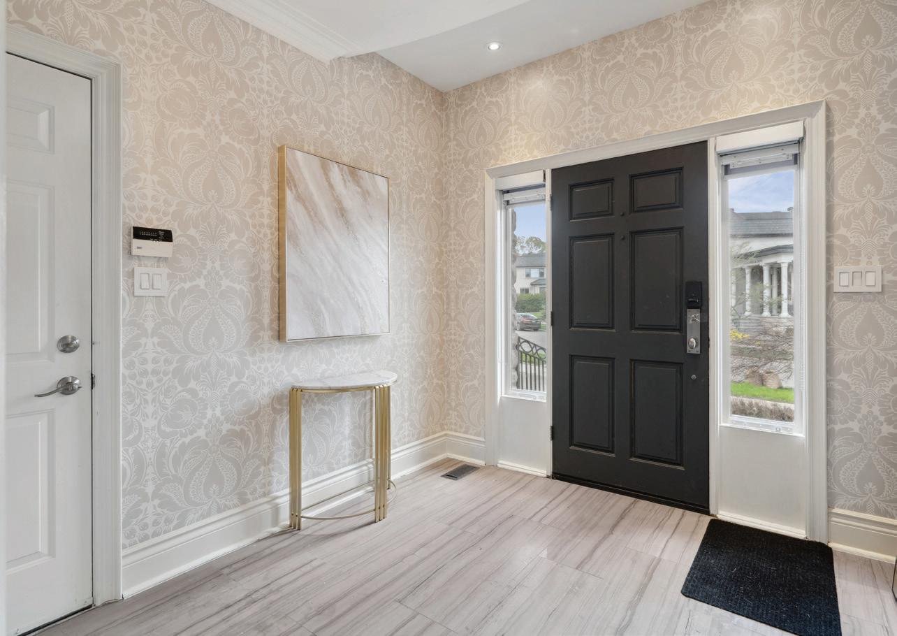Strategically positioned on a quiet road in Toronto’s most desirable neighbourhood, the impressive home features well maintained front gardens, a dual bay garage and four-car driveway, and a wide flagstone staircase.