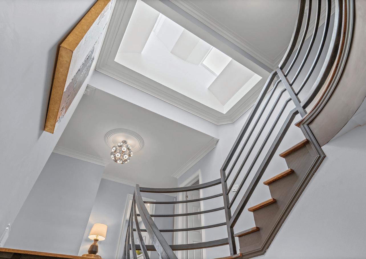 The second floor is freshly painted throughout and is illuminated by a custom skylight ceiling.