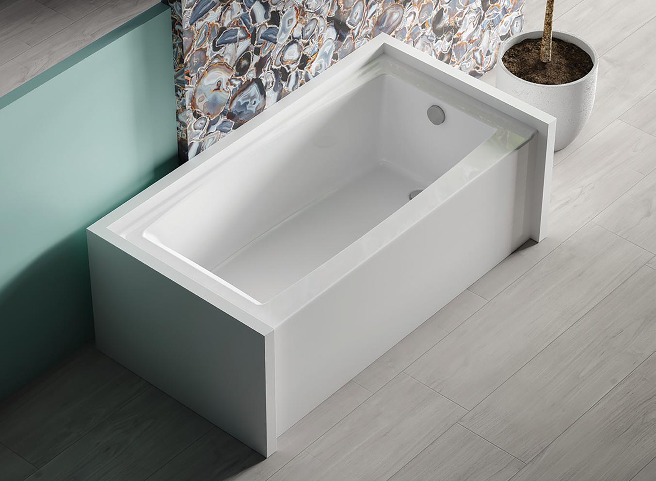 The Langley family of acrylic skirted baths feature classic minimalist design with clean lines, an ergonomic backrest, and wide bathing walls.