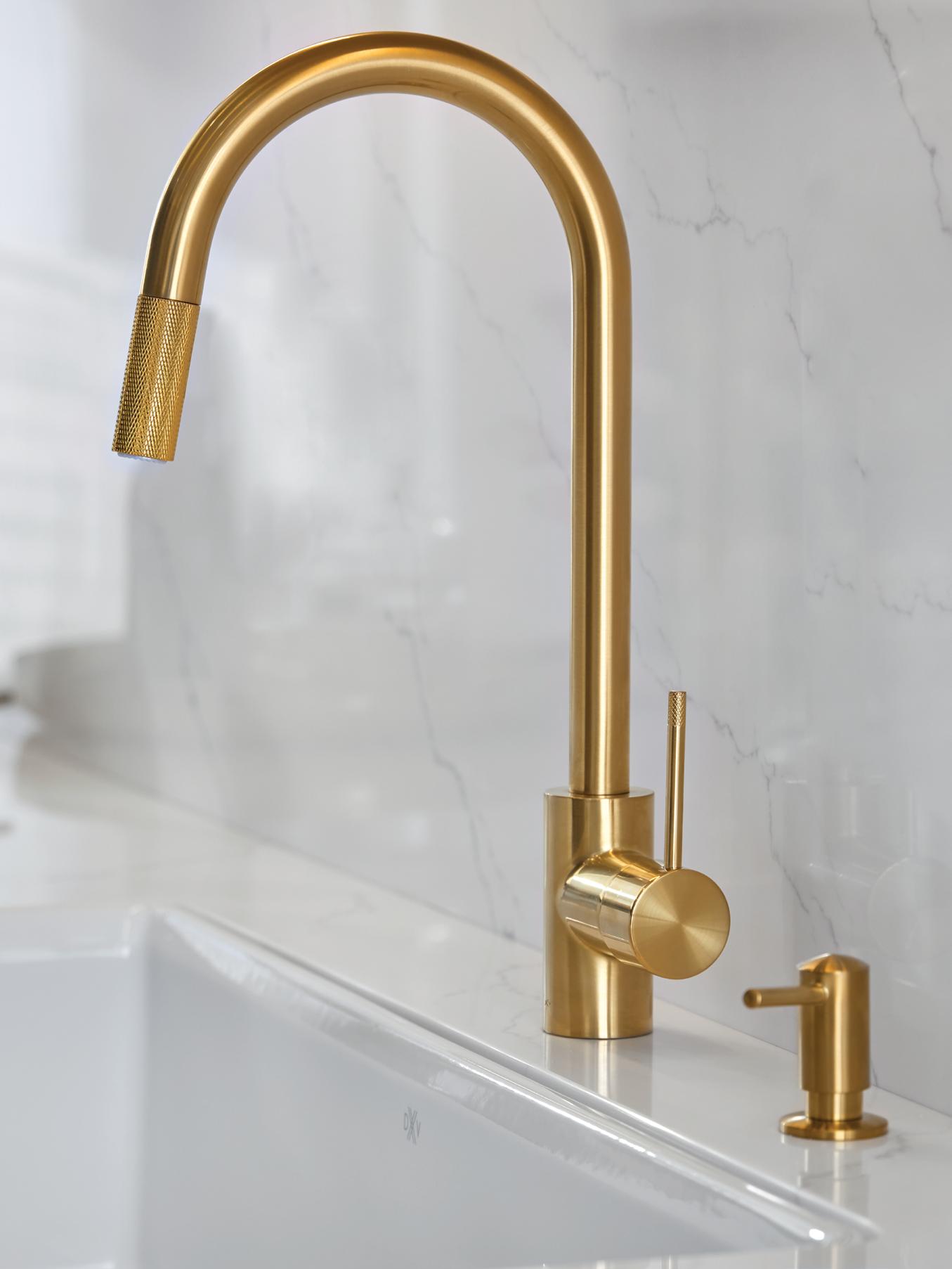 The Rook® Kitchen Collection by Brizo® exudes stately elegance at every turn. Its classic craftsman style is reminiscent of an early 20th-century aesthetic, while contemporary, feminine touches elevate and modernize the look.