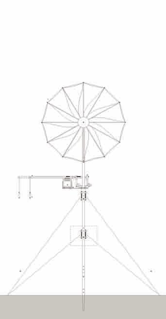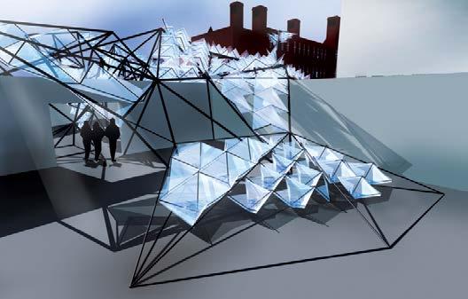 panels which store energy during the day and emits an ambient glow during the night. Fig. 2.5 Yvonne Cheng, Y2, Perspective View. This canopy is made from hydro-active fabric which harvests moisture from the air. The collected water is stored and released to cool the dancing crowds.