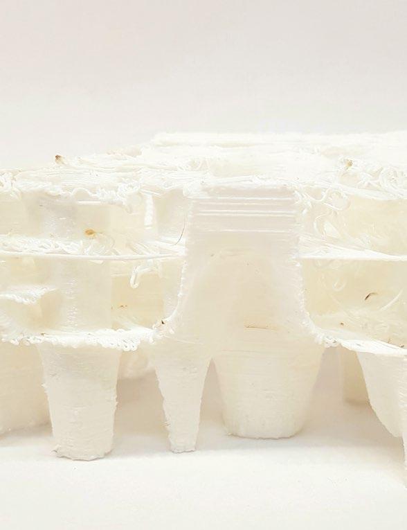 12 Tomiwa Balogun, Y2 ‘Textile Fusion’. Insulation created from off-cuts and waste produced by local fashion industries is fused into structural panels for the development of new and existing buildings.