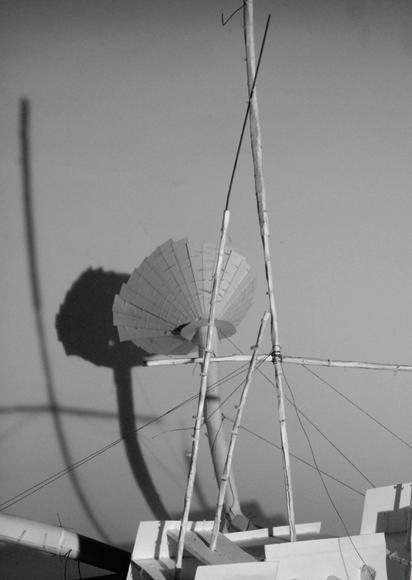 Fig. 2.4 Arti Braude, Workshop and retreat for a community craftsman in London. The small building is designed so it can be built by one person (the community craftsman) who runs a workshop which can be used by members of the Brick Lane neighbourhood. Fig. 2.5. Arti Braude, main building project proposes a Dervish dancing theatre and lodge accommodating annual dervish pilgrimages visiting the Gül Baba memorial in Víziváros, Budapest. Fig. 2.6 Arti Braude, Axonometric view, Workshop, London. Fig 2.7 Helen Siu, Tokaji-wine Headquarter in Budapest. Helen made use of the existing system of natural caves and labyrinths under the Budavári Palace. The labyrinths form part of her building which are used to store wine. Large funnels form an artificial landscape used to grow grape vines