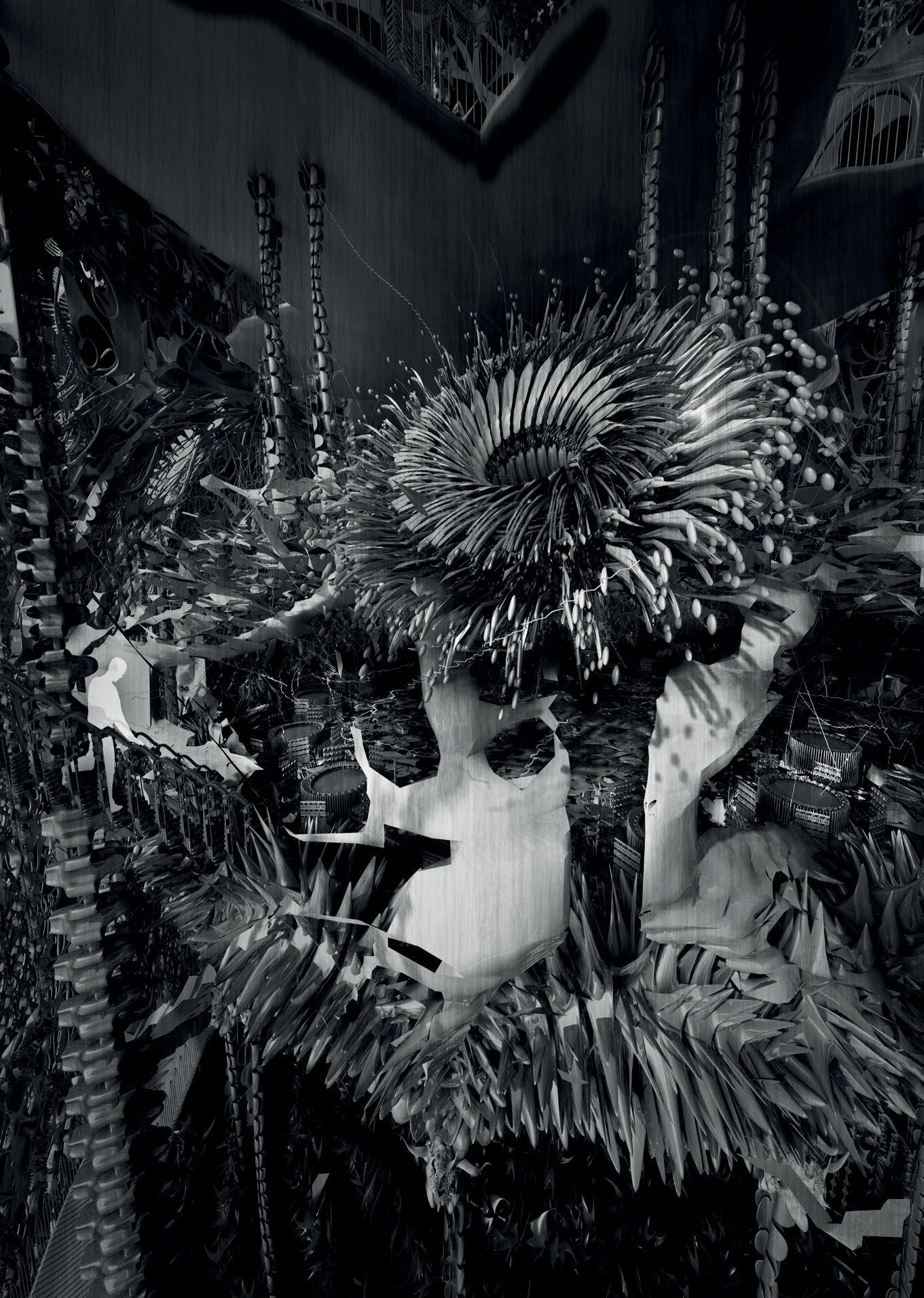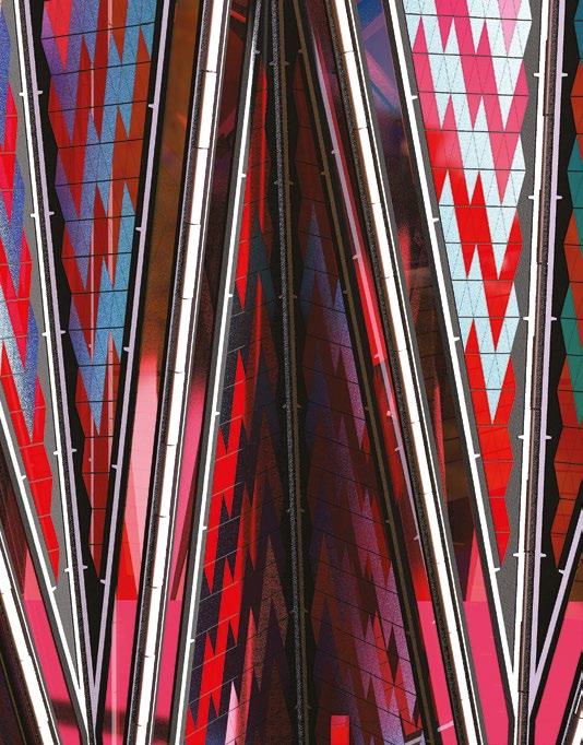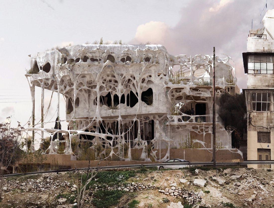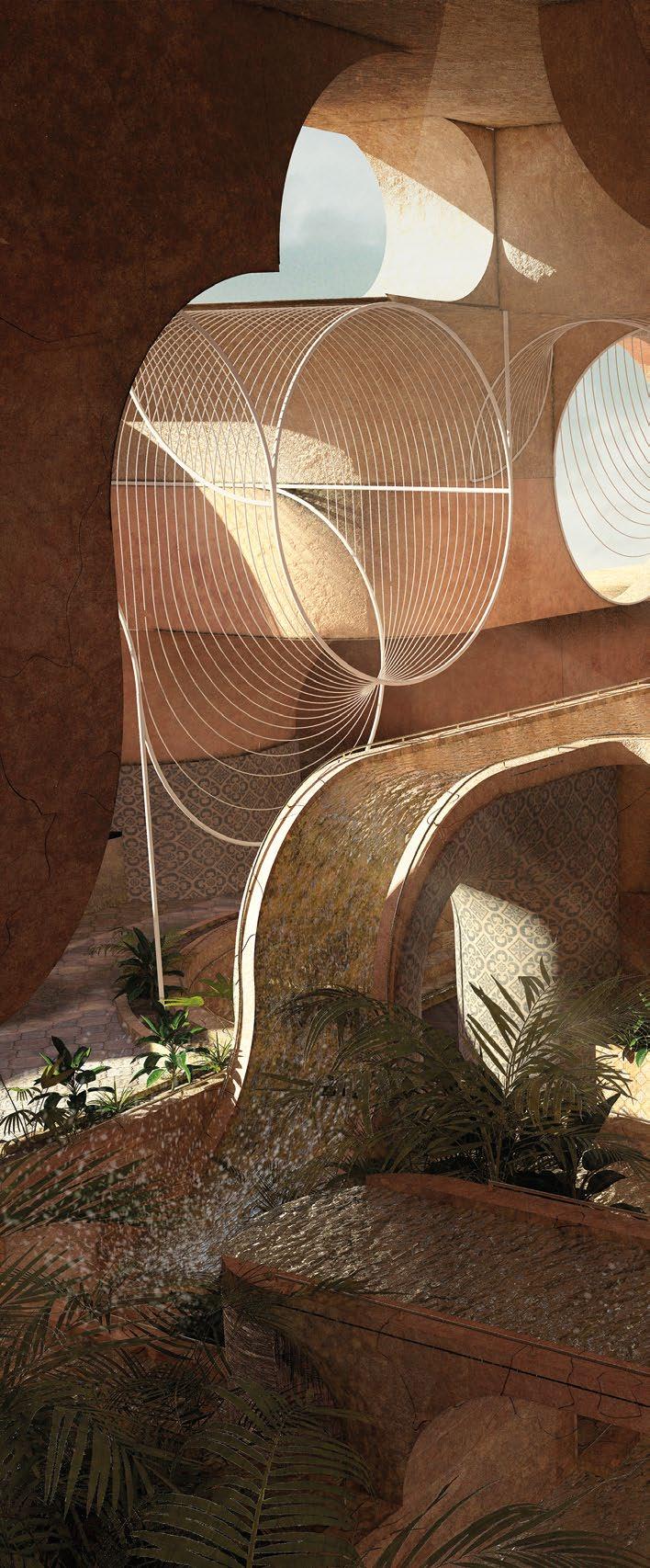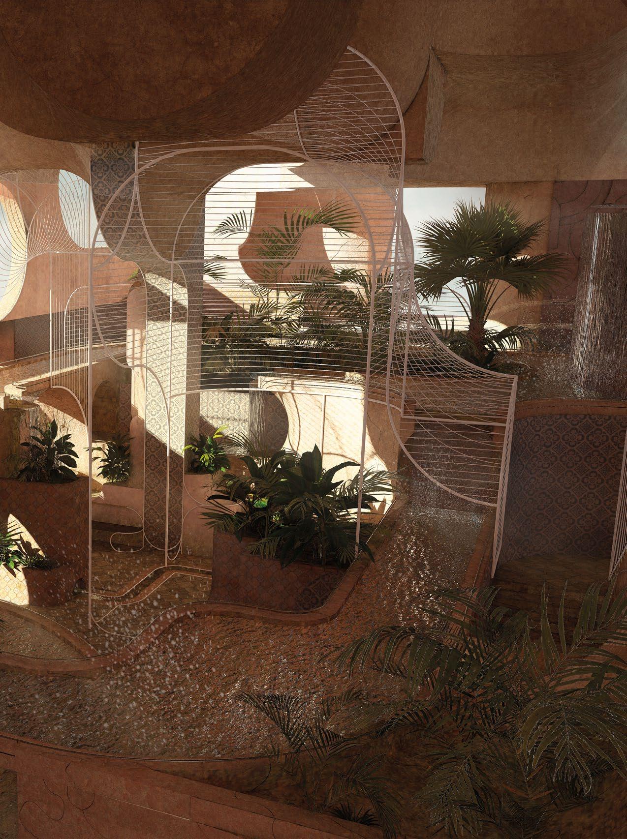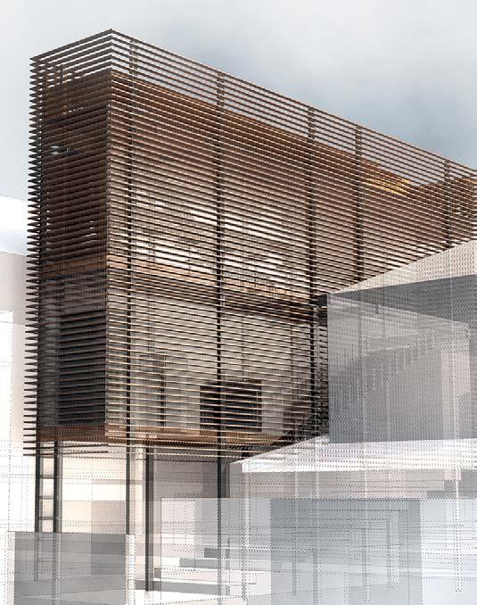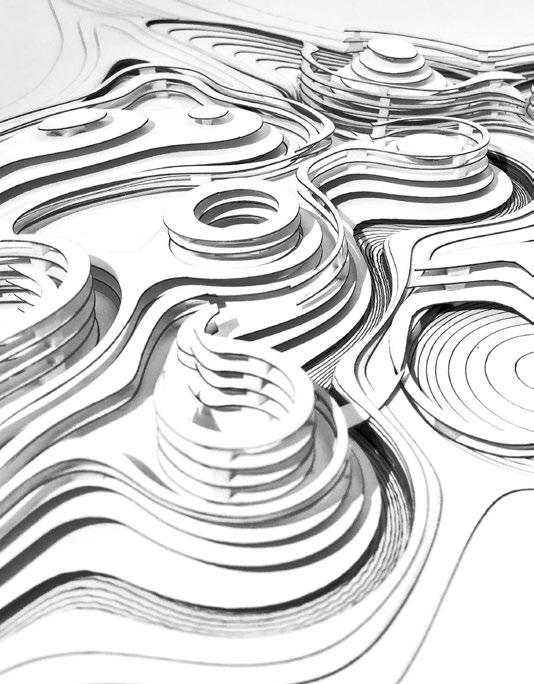 2.6 Nora Seferi, Y3 ‘Loafers Lair’. This project investigates how the principles of spectral light can be applied to the design of a therapy centre that utilises this type of light therapy to trigger serotonin and melatonin production in the body. Digital tools are used to craft and create layered façades that regulate the amount of natural light and urban vegetation growth the building will have. Additionally, internal conditions are created where these qualities can be altered to benefit the mental health of users, accommodating their varying waking times and working hours.