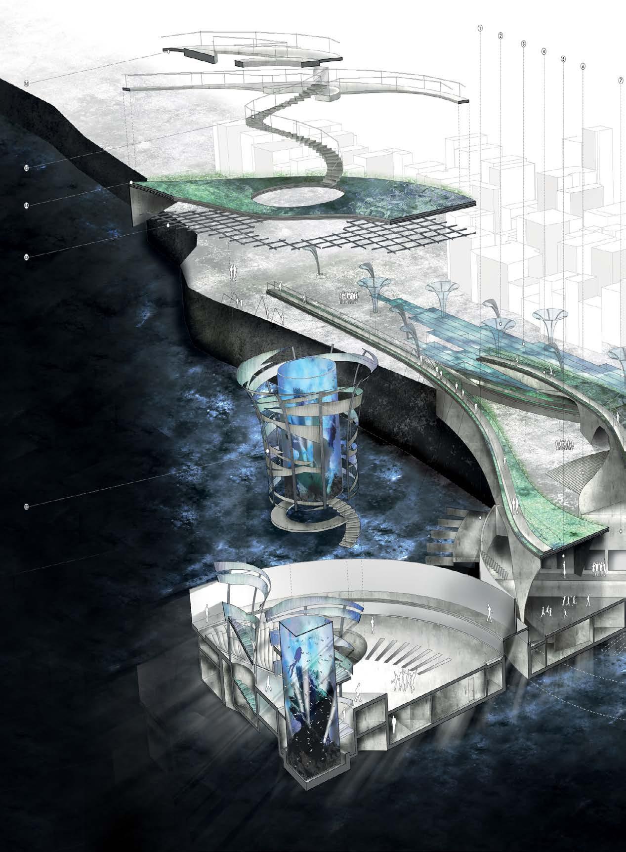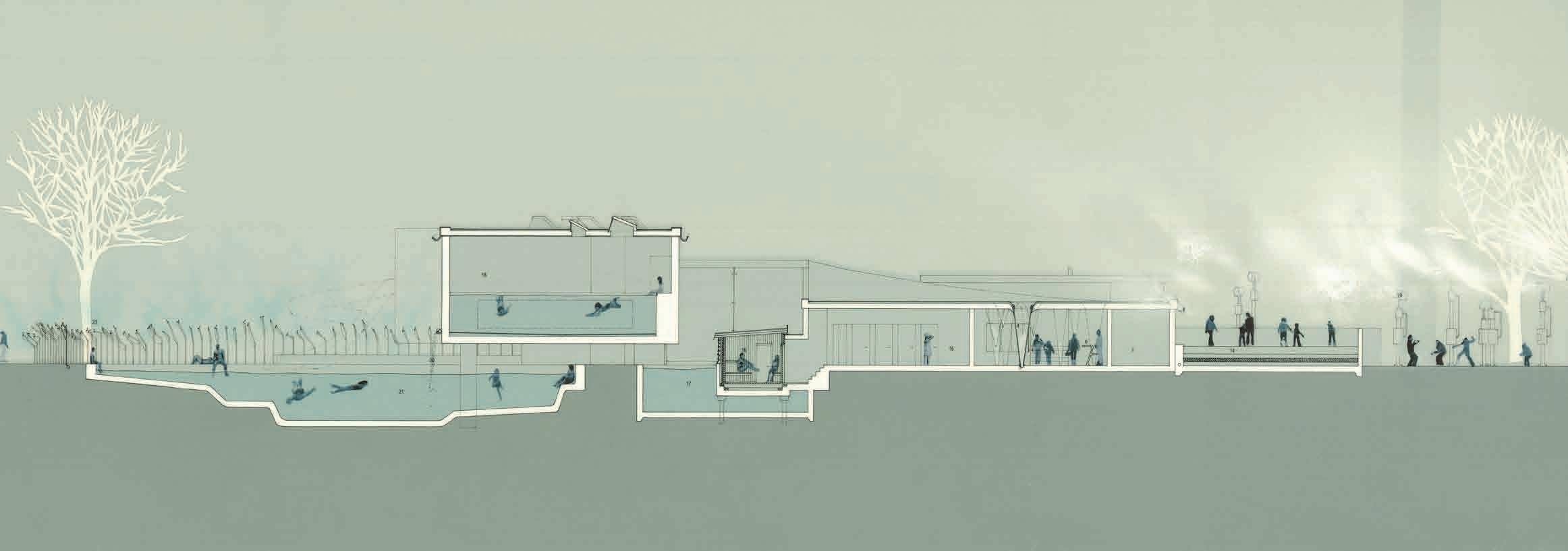 14 Elizabeth Bronstein, Y2 ‘Liquid Commons’. Reimagining a historic water filtration site as a social hydrotherapy centre to reconnect residents and athletes with water and its restorative powers.