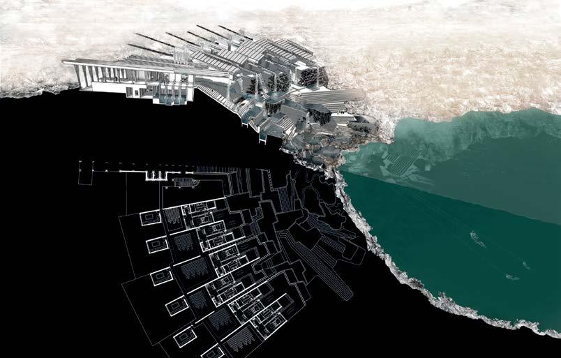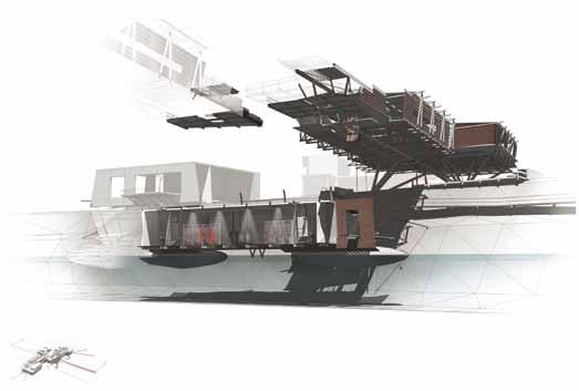 Fig 5 12 & 5 13 Tess Martin, The New US Embassy in Havana In the future world of post-embargo Havana, the US and Cuba are allies While the new Embassy presents itself as a gift to the city and a gesture of friendship, the history of conflict casts an inescapable shadow on the newly reinstated relationship the Embassy is prepared for an attack The project explores the tension between the need for security and a US message of transparency and diplomacy The Embassy holds a comprehensive catalogue of security devices subtle takes on traditional defence mechanisms; from the moat and drawbridge, to escape pods and water cannons, which take advantage of its position on the Bay of Havana Fig. 5.14 Sandra Youkhana, Pelican Palace Havana’s damaged ecosystem has made survival of marine wildlife impossible Resting upon the cheek of the bay on safer waters, the site stands as a green belt – an untouched stretch of coastline on