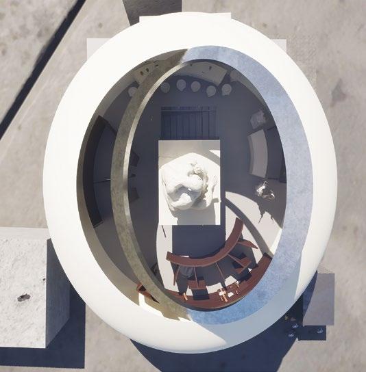 5.2 Hossain Takir, Y3 ‘Recolouring the Gods’. The project is a collaboration between Japan and Greece to reconstruct and repaint Ancient Greek sculptures using advanced imaging technologies, such as multispectral and hyper-spectral imaging, to discover their true colours. The project developed through an investigation into these imaging technologies. The building’s programme has evolved to accommodate the analysis, processing, reconstruction and repainting of the sculptures. The design creates a space for the reconstruction, painting and display of these Ancient Greek sculptures.