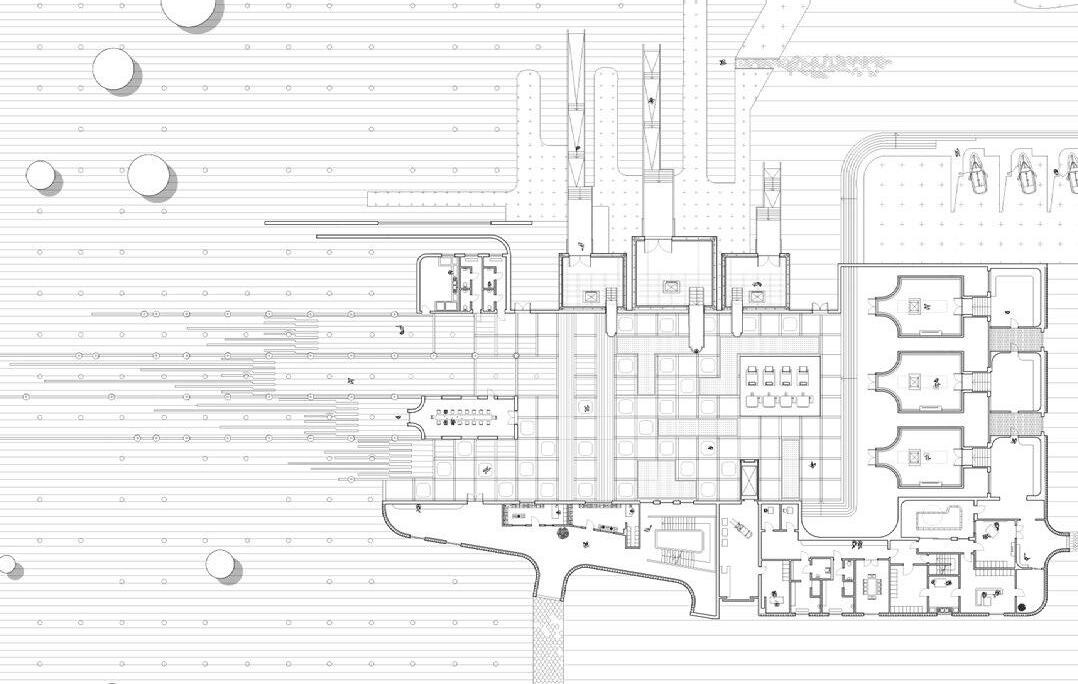 Fig. 5.11 Kun Bi, Istanbul water studios. Located on an abandoned shipyard next to the Golden Horn, this building is a combination of water related film studios and public playground. As a film shooting location, it provides water studios, diving pools, jumping pools for different types of film shooting. It also has space to simulate deep sea by using illusions. Fig. 5.12 Lucas Ler Zeng, Feminist Coffeehouse. A recycling platform for coffee that offers a forum for discussion. At the same time exploring a robust landscape strategy for the fragile nature of the island close to Eyup.