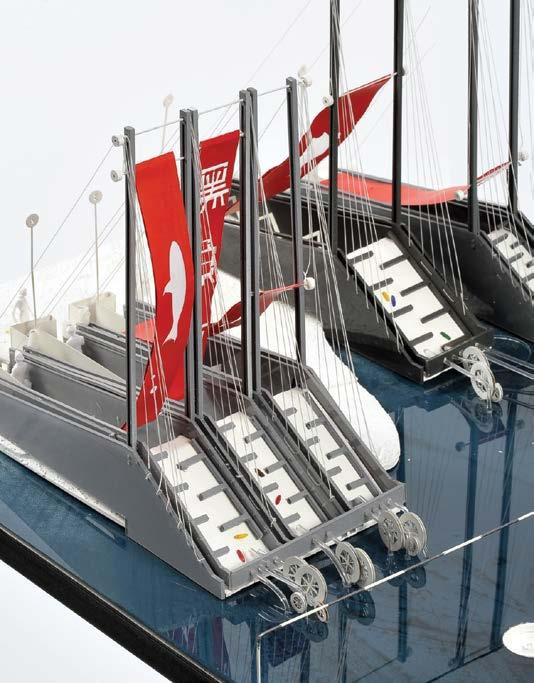 rumour suggest the grain reserve held on site in Canary Wharf is enough to sustain London’s current population for 90 days (the figure recommended by the UN) Fig. 5.5 Peter Simpson, Armenian Mime and Shadow Puppet Theatre. Scenery is moved into the auditorium on tracks and acrobats descend from the roof, this is all played out in front of the historic skyline of Istanbul. Fig. 5.6 Jack Sargent, Canary Wharf due collectors. Fig. 5.7 Robin Ashurst, Olympic Water Pavilion, an opportunity to re-instate Tower Hamlets’ role in the Games, creating a theatrical event. Fig. 5.8 — 5.9 Joanne Chen, Perfume factory, a symbol of fusing landscape and industry. The fragrance leaks out of the building through a number of chimneys, which release the steam of boiling fragrant water as a pleasant atmospheric filter. Fig 5.10 Robin Ashurst, Golden Horn Hospital. Ambulance boats offer a pick up from the nearby Galata Bridge.