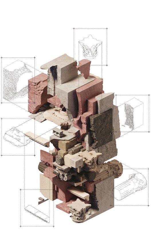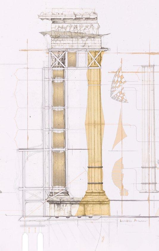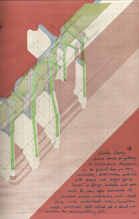 18–19 Rohan Humphrey, Y4 ‘Time in Transit’. Speculating the reanimation and reimagination of lost monuments through staged transitions to revitalise Rome’s peripheries.
