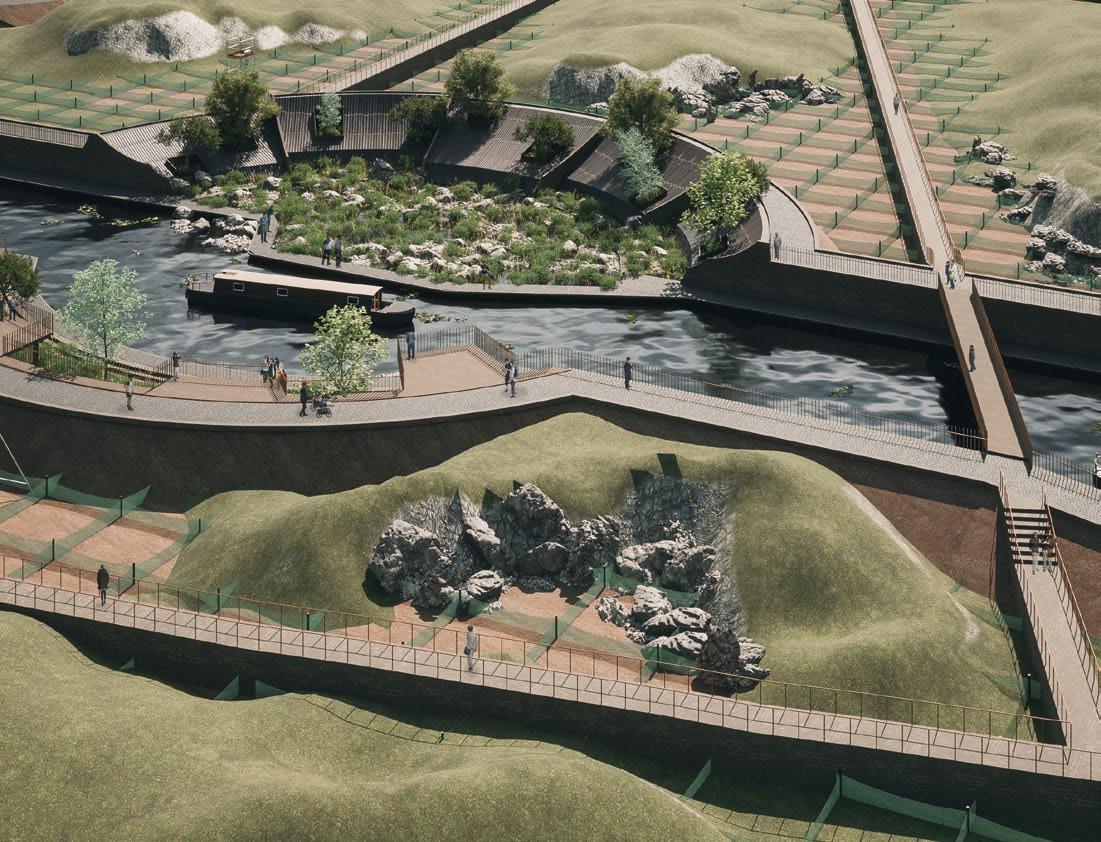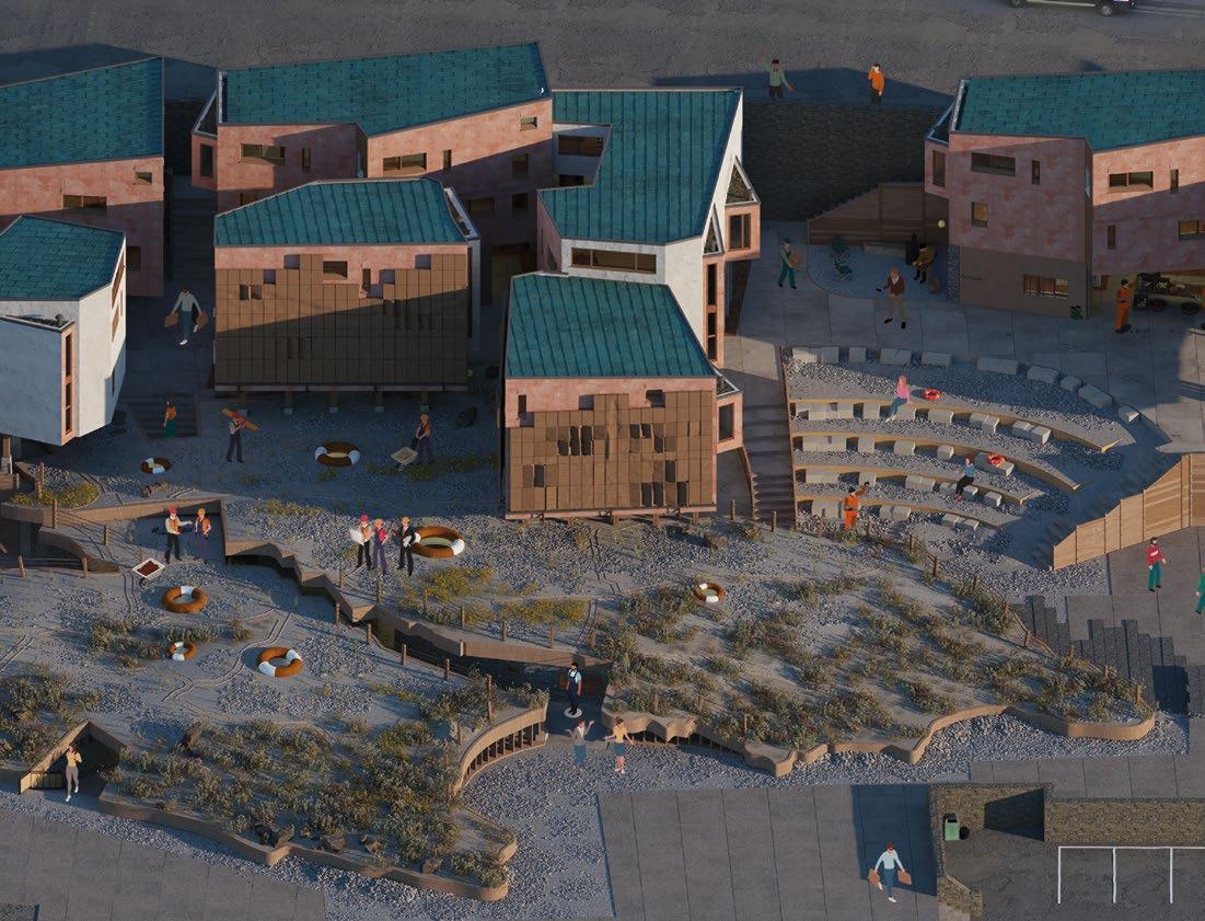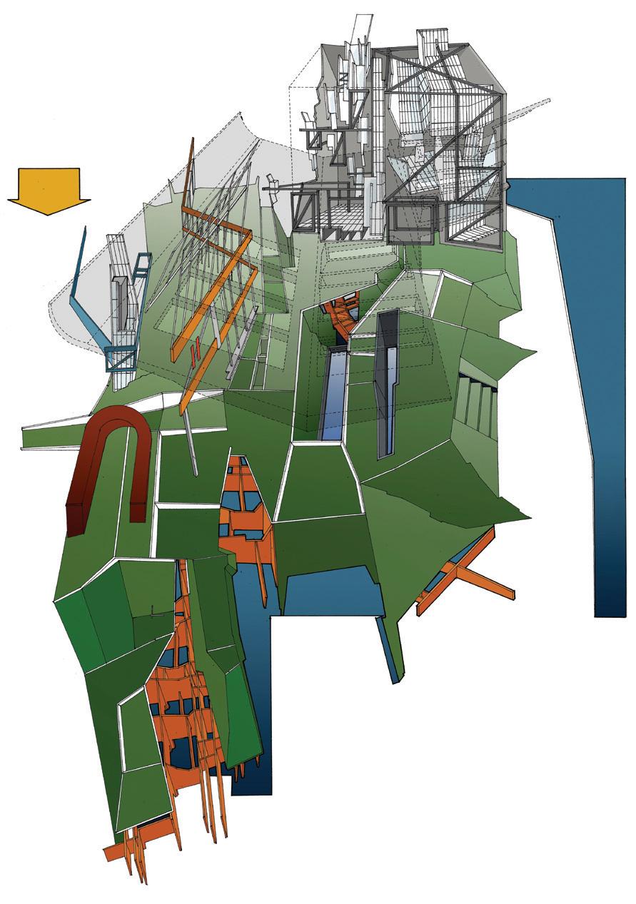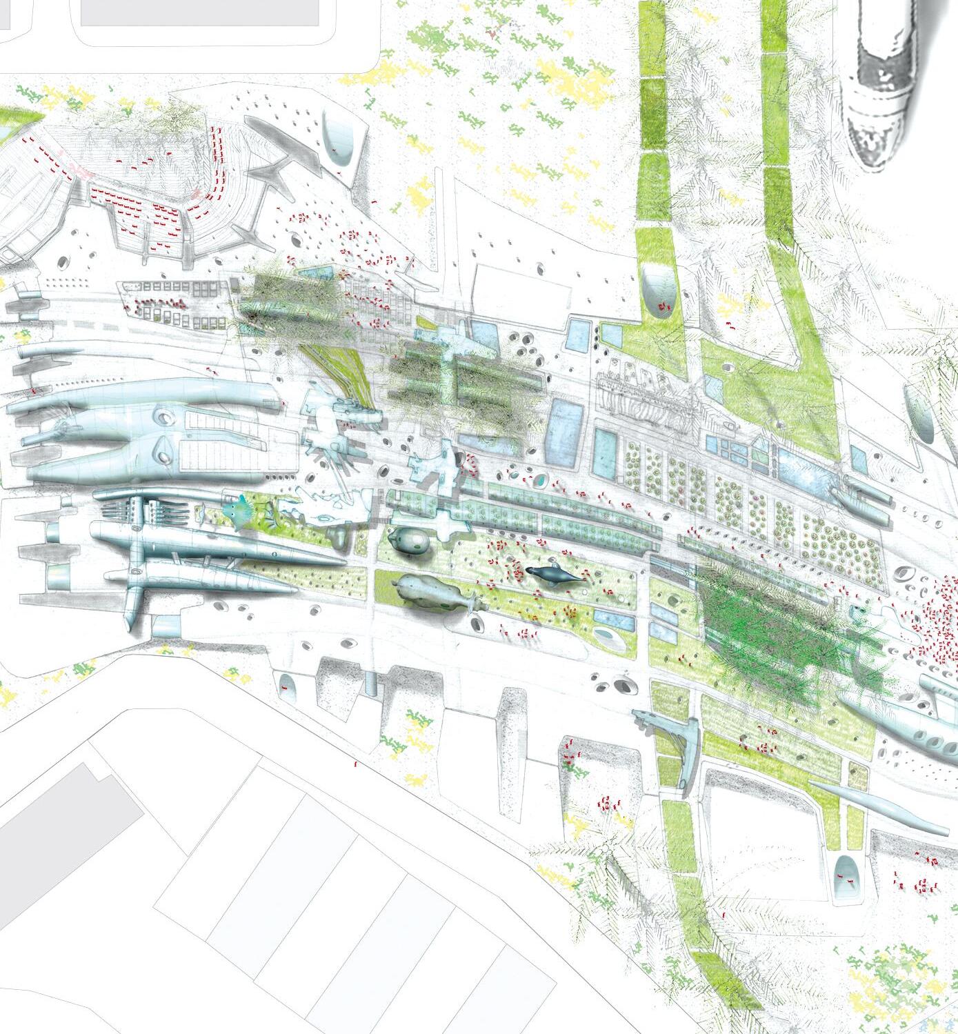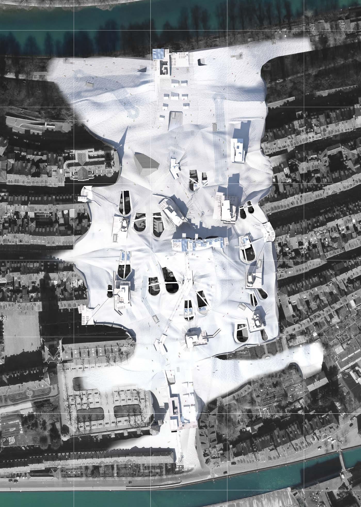 relationships to each resident. A new terrain is created through the manipulation of site spoil with mounds acting as anchor points for temporary extensions of the island positioned along the outer edge, extending public use of the waterfront.