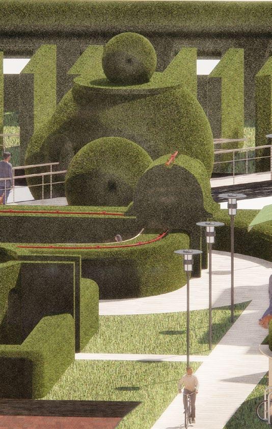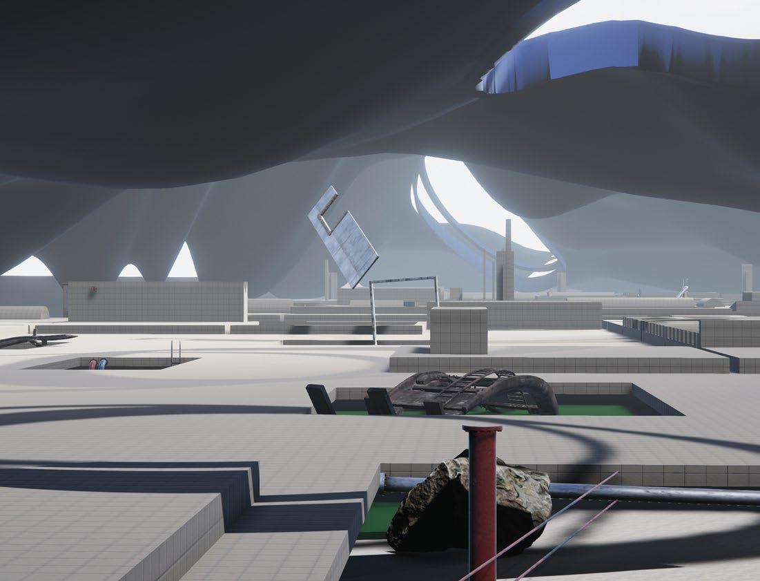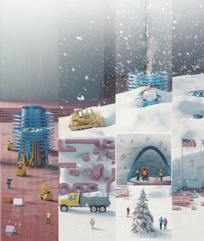 mini golf hole. Utilising vapour from a local source, the intervention acts as a green buffer to heal the urban hardscape of Miami. Fig. 11.4 Luke Royffe, Y5, Balancing CatastropheEast Coast Arks. The future Floridian landscape will be transformed by the increasing frequency of catastrophic events. This will expose the inadequacy of Florida’s closed forms of defensive infrastructure and defective housing typologies. The project, Catastrophology, proposes to densify Miami’s housing typologies and reconfigure existing protective infrastructures. A new East Coast Reactive Levee will create a permeable threshold between Miami and the Everglades National Park. Integrated into the reactive levee, self sustaining Arks form a network of inhabited biomes that embrace the natural event of catastrophe.