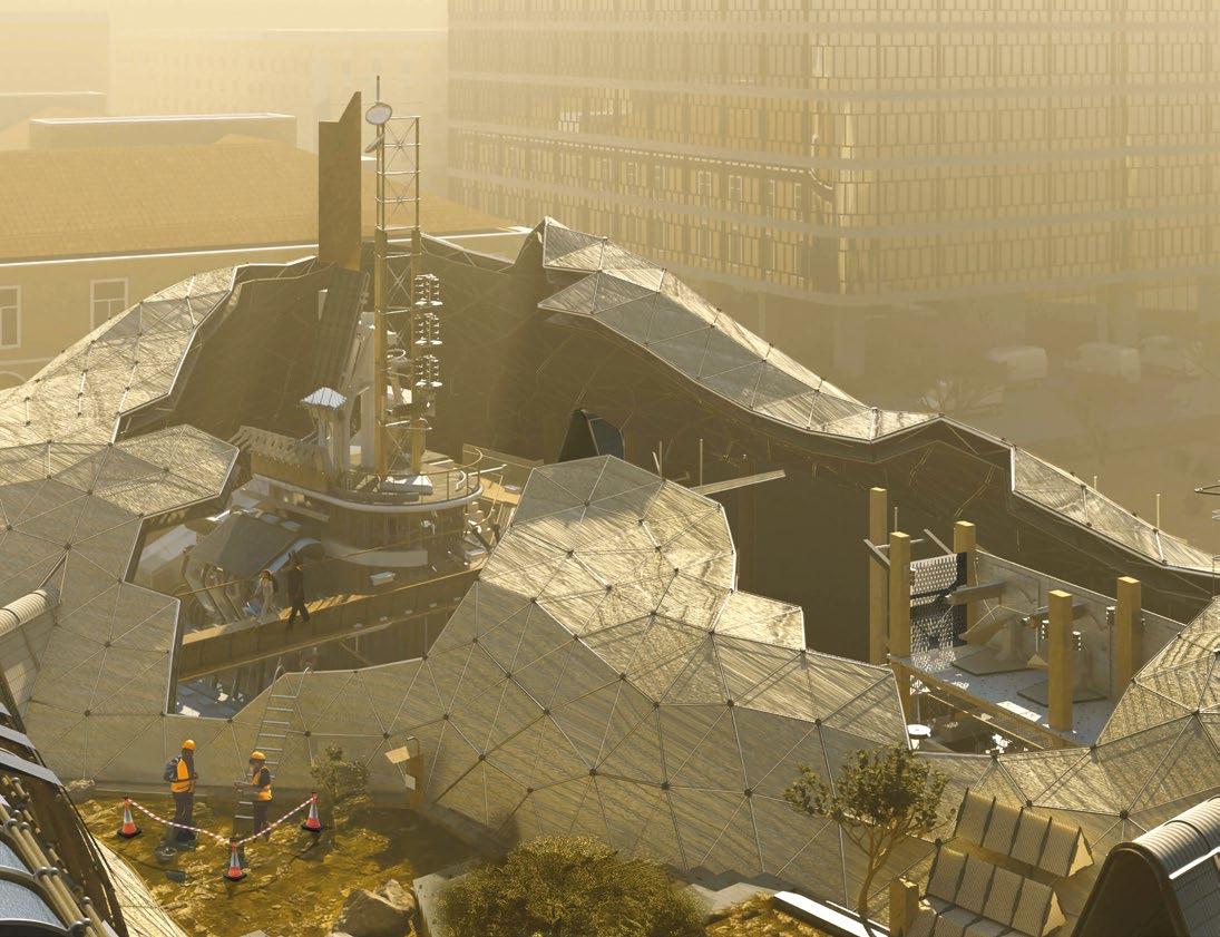 15–16 Ian Wille, Y5 ‘The Keyhole Society’. Amid bureaucratic inefficiencies, the project subtly engages with the rich architectural context of Rome. Using legal loopholes, the site becomes a testing and manufacturing ground for experimental architectures.