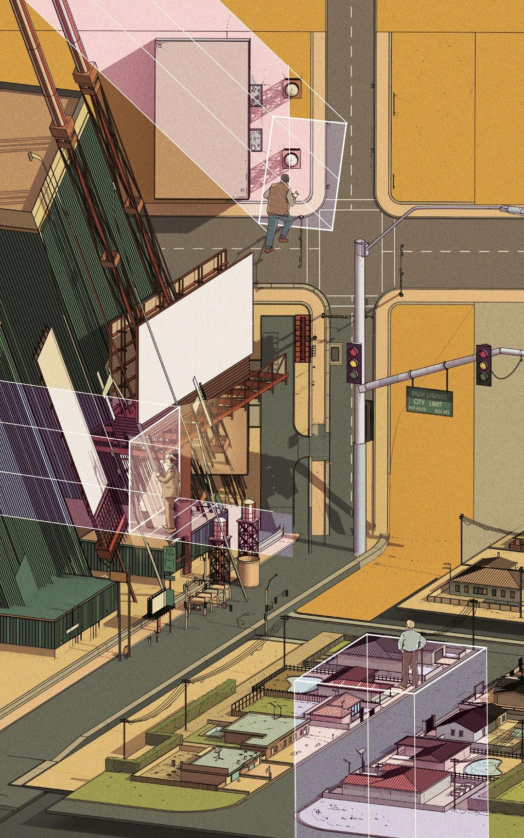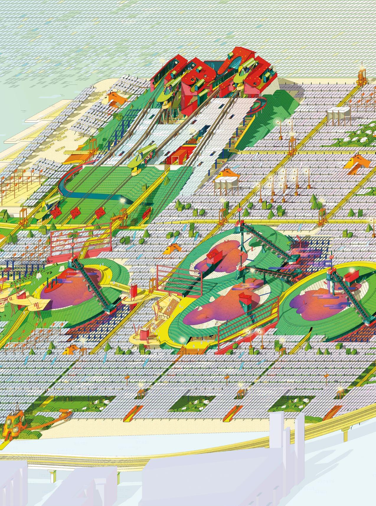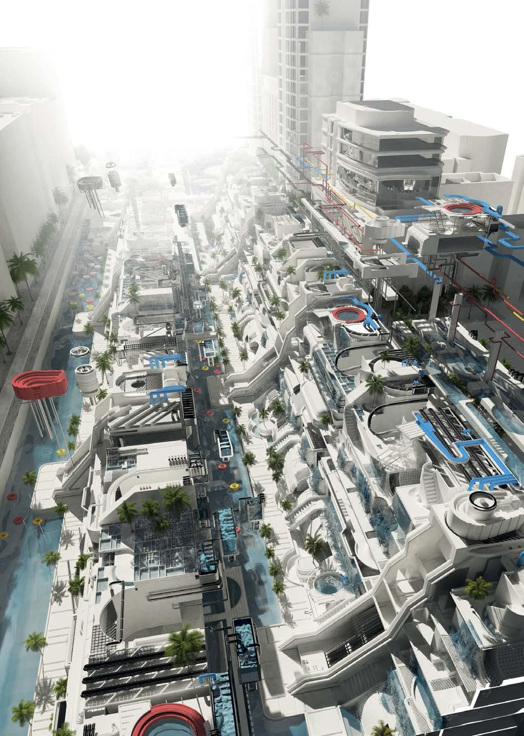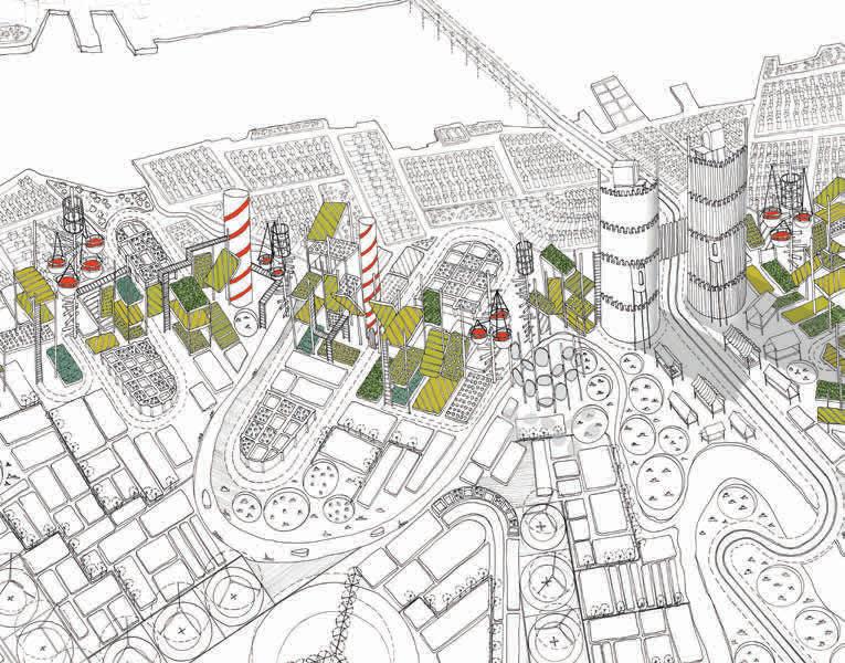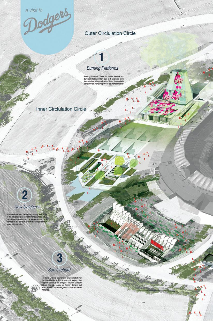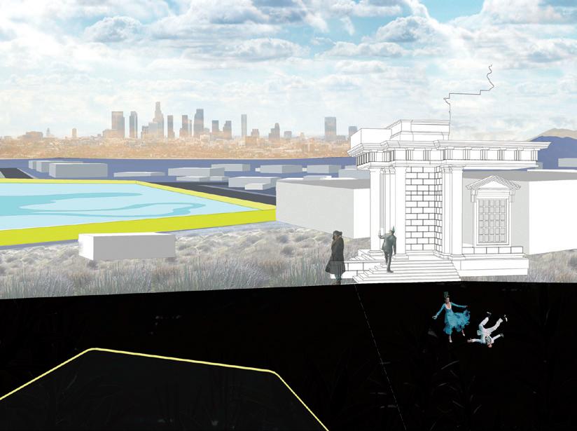 Fig. 11.11 Sigrid Bylander Liminal Wonderland, Fantasy Island, Loz Feliz Reservoir, Los Angeles Fig. 11.12 Jon Kaminsky ‘Land Rig’, Seal Beach, Los Angeles The benevolent scheme houses Texaco Chevron’s retired oil workers and provides work and profits to afford them better health care and living conditions Fig. 11.13 Ioana Barbantan The Next 50 Years at Dodgers A communityled proposal for a series of public spaces in the form of microclimatic pavilions on the extensive concrete skirt of the Dodgers car park informs, inspires and warns users of LA’s environmental present and possible future Fig. 11.14 Theo G ames Petrohilos The SIG Building, Santa Monica, State Route 1, is activated by the cars that choke LA and acts as a modern-day victory arch of commerce a n d ro a d s i d e co m m u n i c at i o n