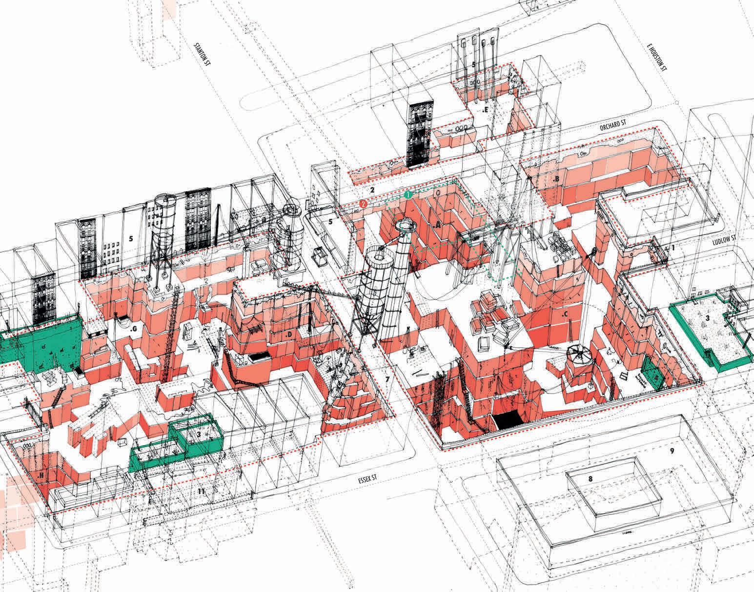 We began by looking at New York from afar. Following film screenings and readings, students examined the curious realities of the city’s support structures, political manifestos, and avant-garde attitudes. They developed propositions that speculated about the actual and potential architectural impact of the systems that drive the everyday operation and formation of the urban reality. We sought to operate at the interface between architecture and the city’s cultural, environmental and build infrastructures. The studio examined systems ranging from the New York steam network, brownouts, food distribution, water and waste management, to the potential for mineral extraction from the bedrock of Manhattan.