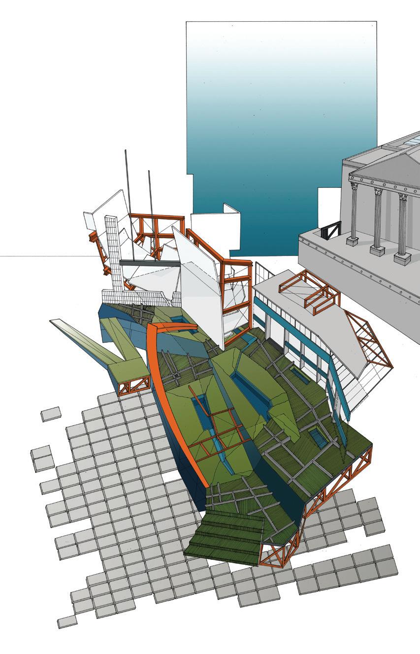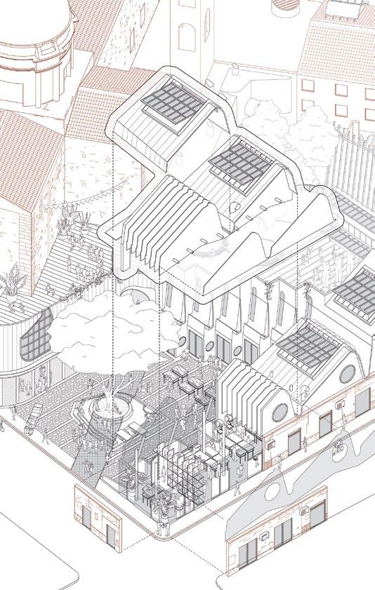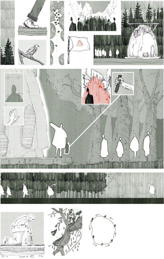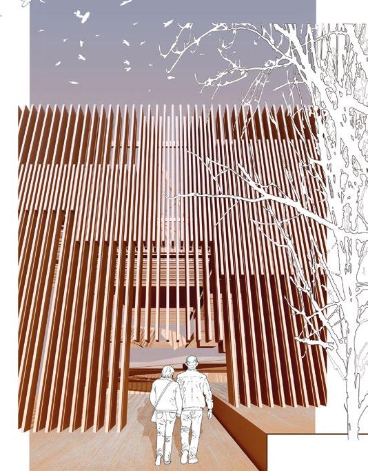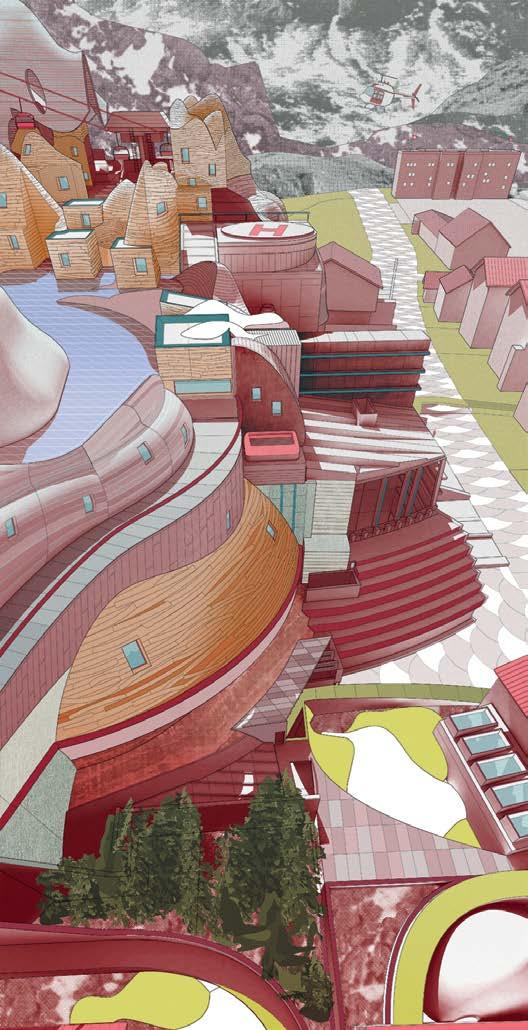 17 Elise Wehowski, Y4 ‘Ecologies of Healing’. A children’s wellbeing centre on Janiculum Hill transforms a disused amphitheatre into a timber-structured landscape of empathy, play and recovery.