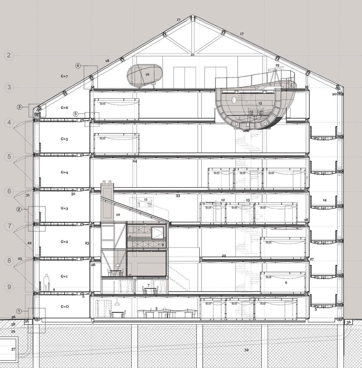 9 Parin Nawachartkosit, Y4 ‘The Apollo Complex’. Speculative fabulation transforms a derelict 1950s cinema into a polyfunctional platform – cinema, dance school and library – unfolding narratives within a complex site to develop a vocabulary for Rome’s evolving future.