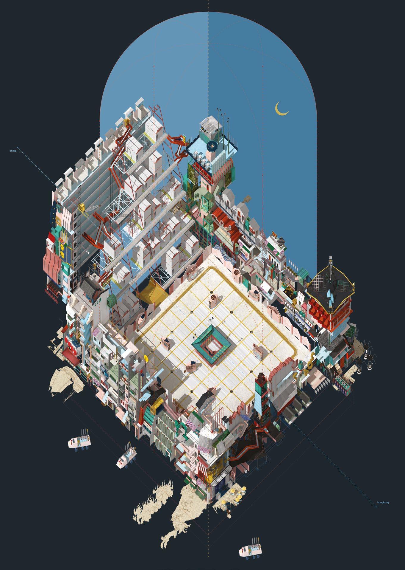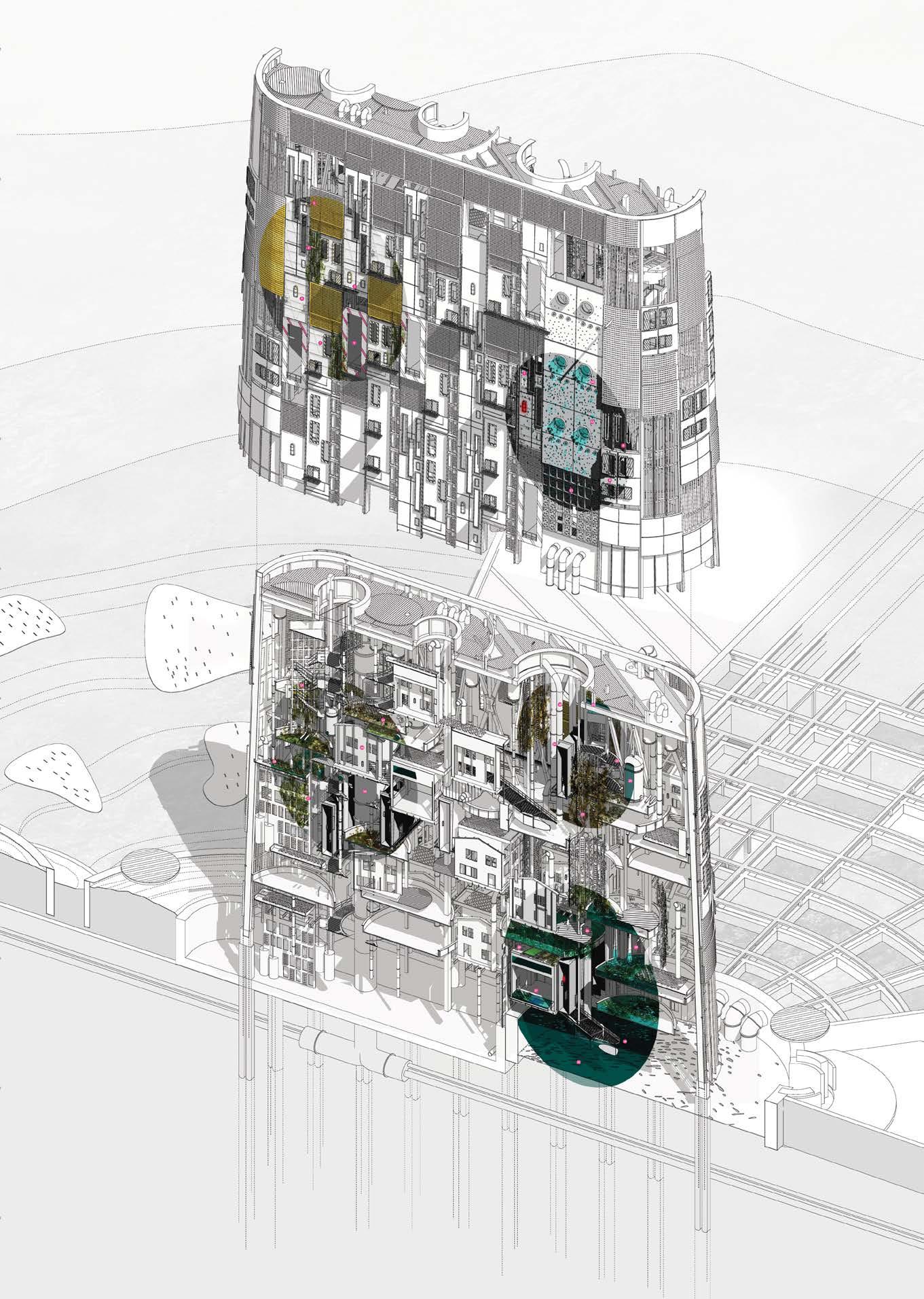 8 Wing Tin (Cyrus) Shek, Y5 ‘Mōns No.9: Plastic Paradigm’. This project envisions architecture as artificial nature, turning waste into systems and landscapes that reflect modern disposal habits and promote sustainable, closed-loop design solutions.