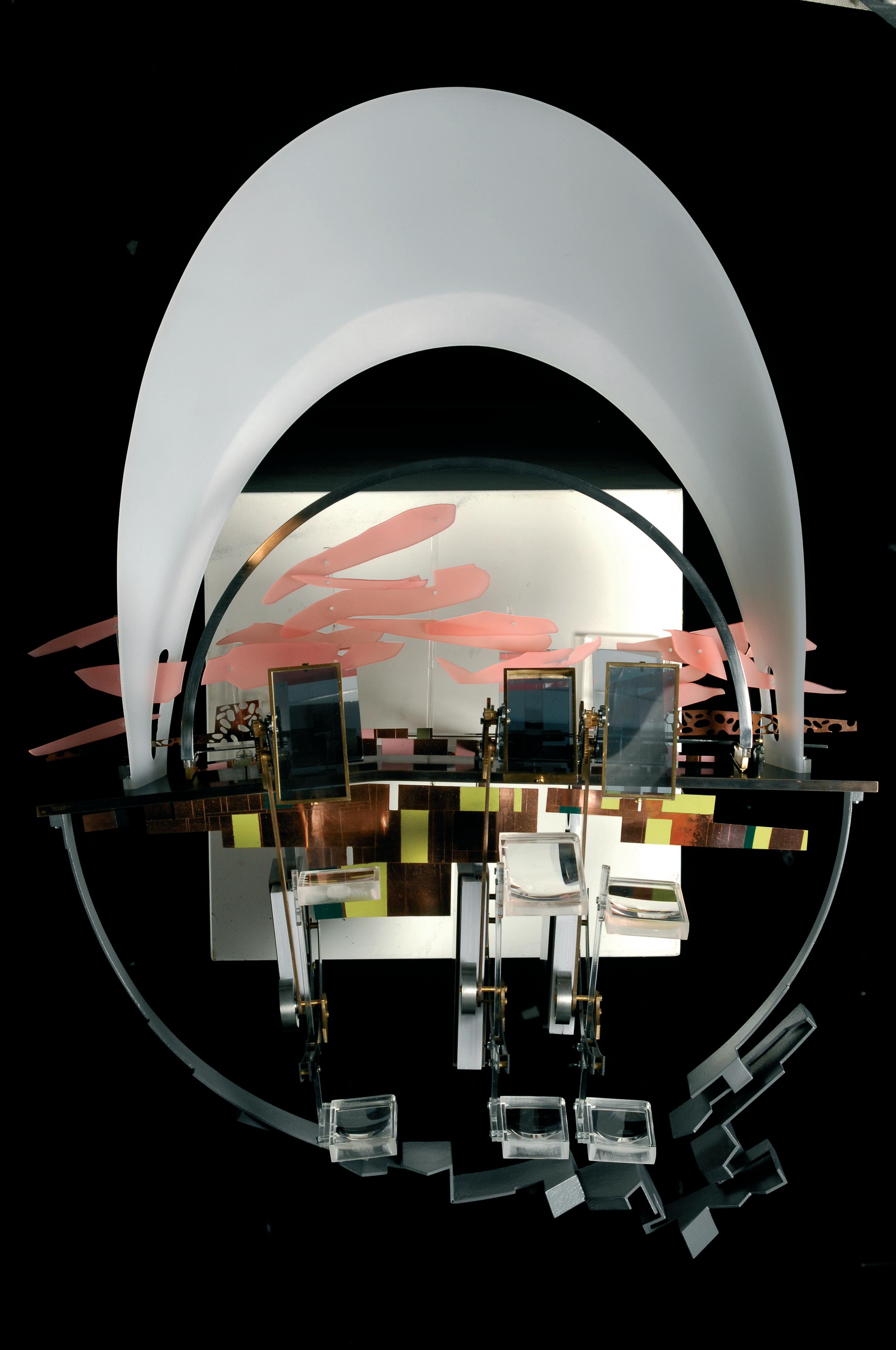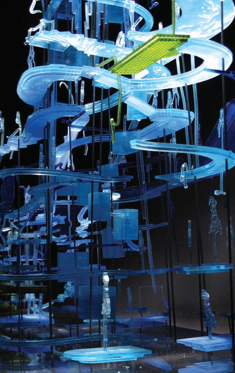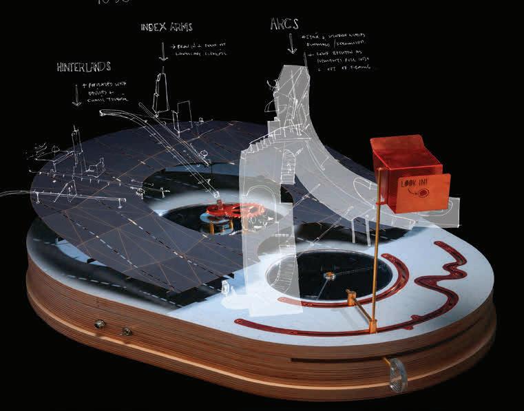 Fig. 11.8 Alisan Doherty. Watershed Public Toilet, J.P Morgan Chase Bank Plaza, Manhattan. This project develops a new take on the traditional NYC public plaza. Super-scale water harvesters collect and treat storm water and reuse it as a public spectacle and public toilet. Fig. 11.9 Banksie Critchley. Landscape of Sleepless Light, Sara D Rooselvelt Park, Manhattan. Colour spectrum modelling exposing concealed routes over a subterranean landscape. Fig. 11.10 Marcus Todd. Proximity without Presence. An exploration of New York as the original cinematic city, through readings of Alfred Hitchcock’s New York-based films. Arced models investigate the conceptual and physical gap between interior and exterior in the construction of filmic space. Fig. 11.11 Farah Badaruddin. Scriptorium Institute of