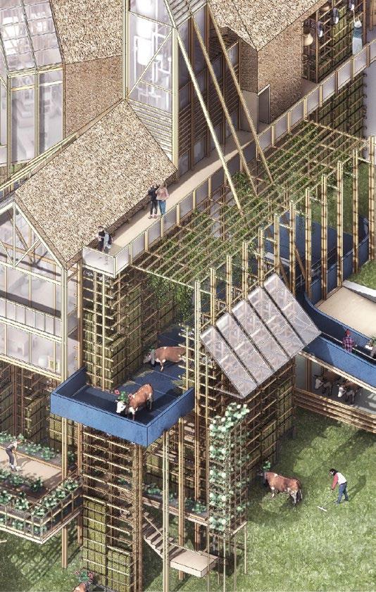 11.3 Bianca Blanari, Y5 ‘The Greenhouse Archipelago’. Exploring the horticulture of greenhouses, the project critically assesses both the Dutch model and Almeria in Spain. Using greenhouses as the urban fabric, the design confronts monocultural landscapes, addressing pivotal social and environmental concerns. It delves into issues of food security, resource management, cultivation practices and cultural identity, while also scrutinising the conditions of greenhouse workers and users.