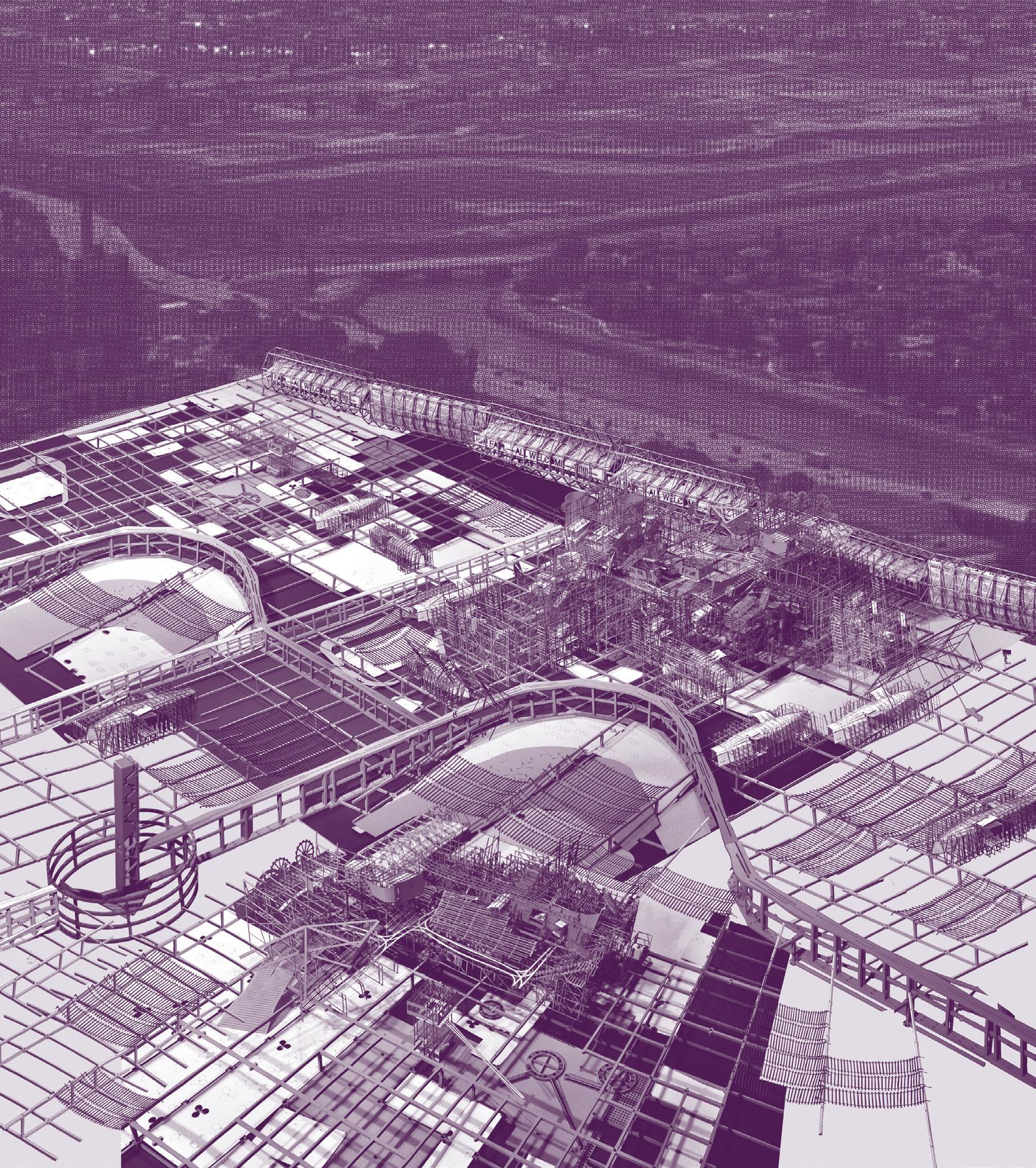The megascheme positions architecture at the convergence of urbanism, engineering and infrastructure. These conceptual speculations as well as New York’s megastructural remnants such as the Washington Bridge Extension Complex and idealist visions such as the United Nations Headquarters and Rockefeller Centre, exploit the vertical and horizontal – three-dimensional – infrastructure of Manhattan’s built and natural environments which overlap and entwine to form a nexus of the technological, cultural and natural world.