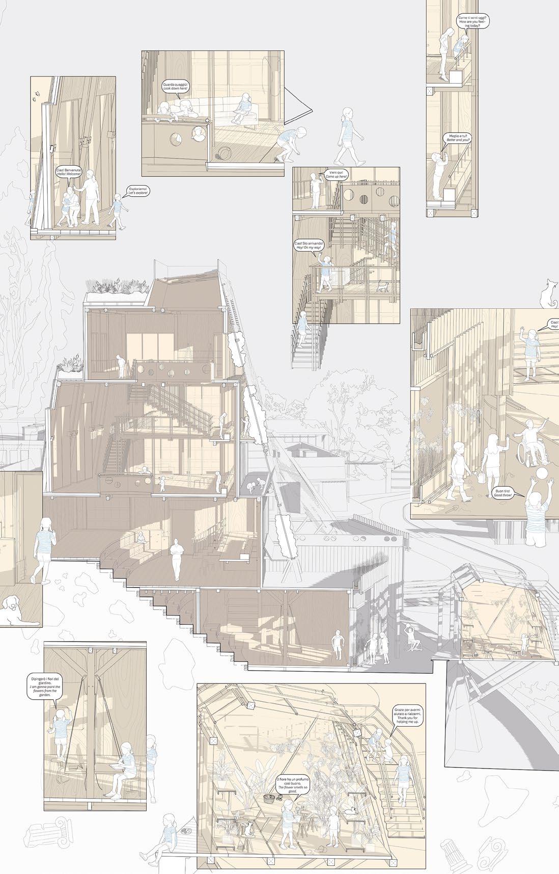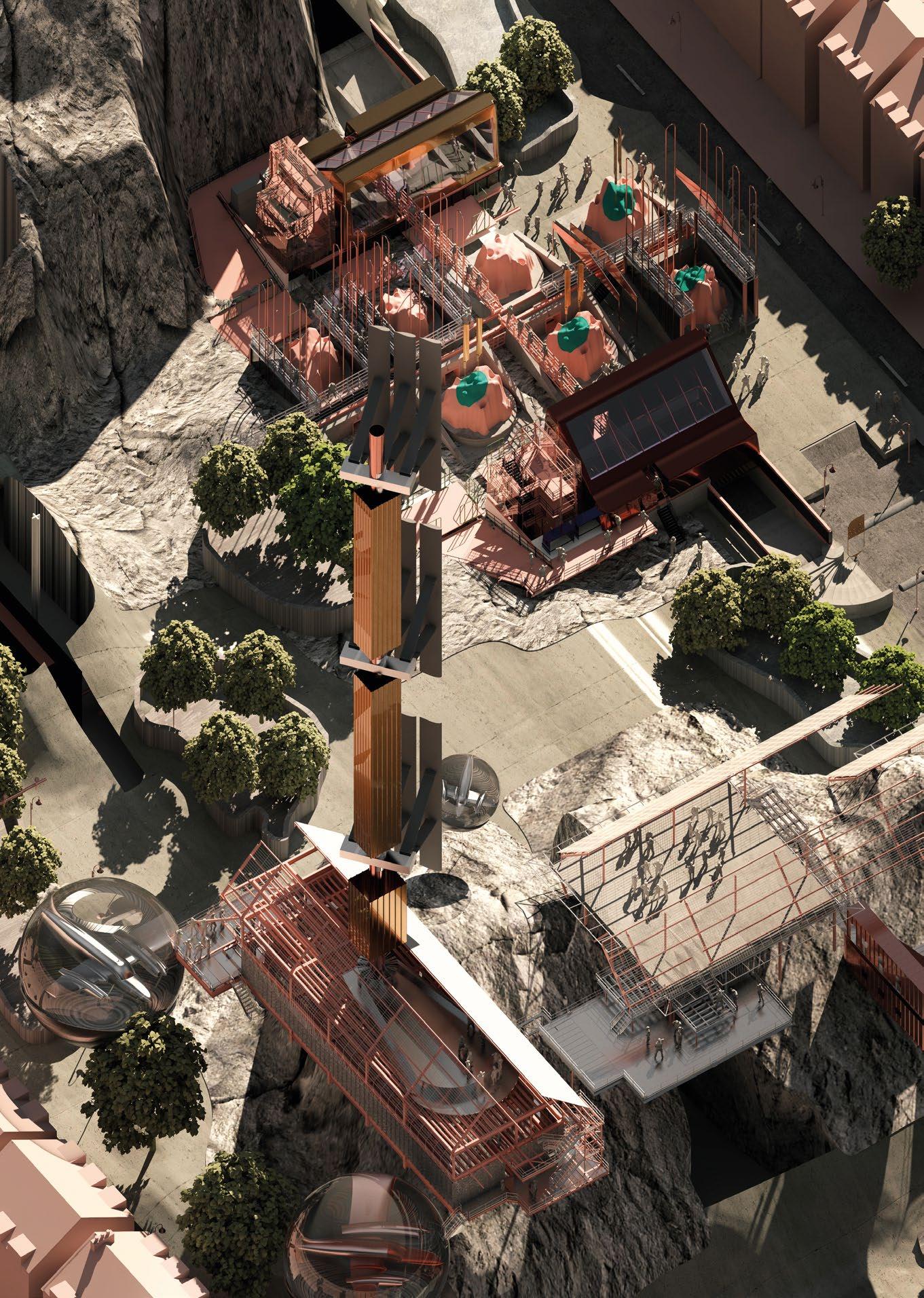 a wasteful dystopia to its promised utopia. It explores the taboo and unpopular issue of garbage, challenging the invisibility and unsustainability of the current garbage infrastructure, it proposes that waste management should be brought closer to our everyday environments, increase energy efficiency and off-grid communities, whilst retaining the utopian image of suburbia to which many still aspire.