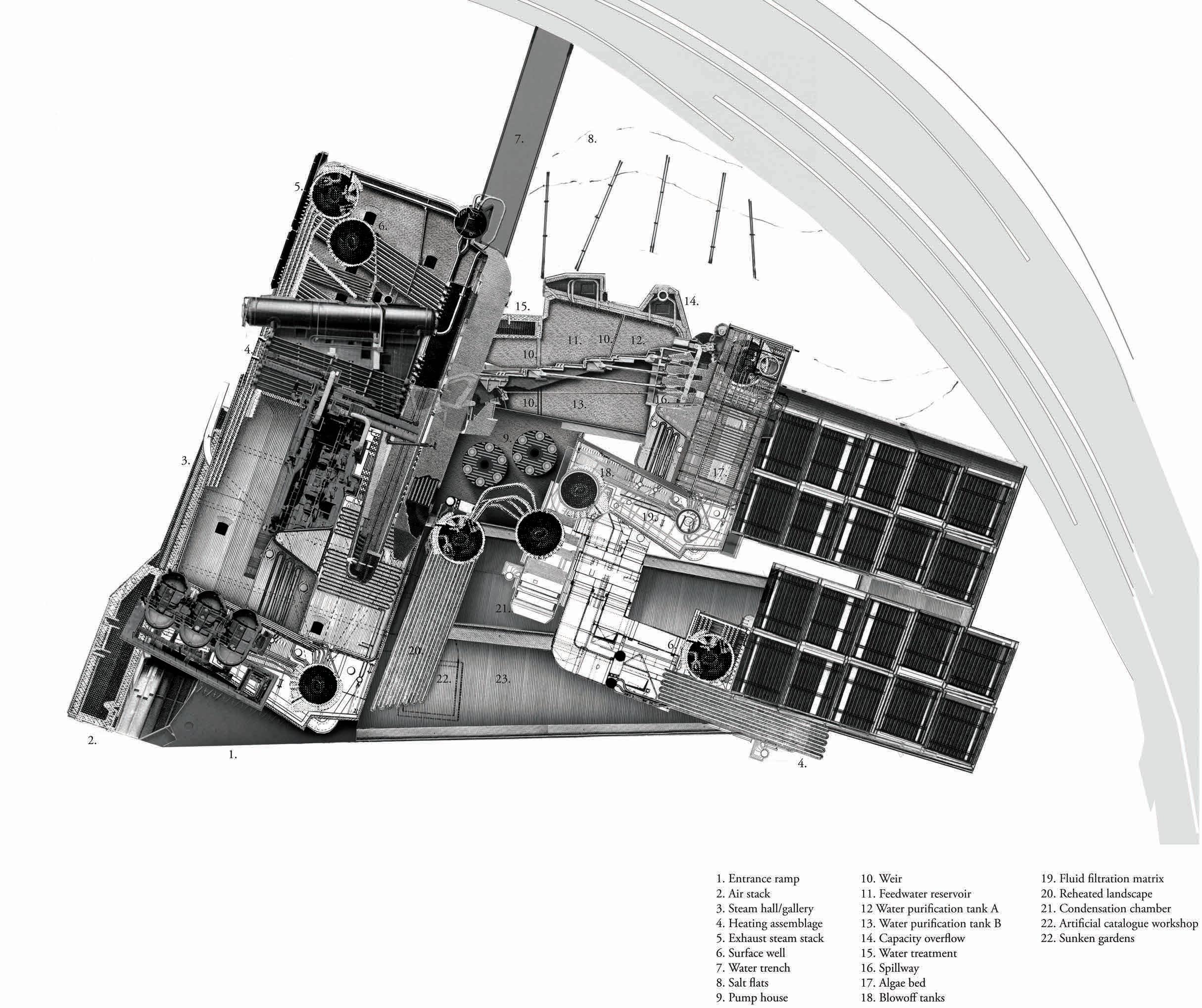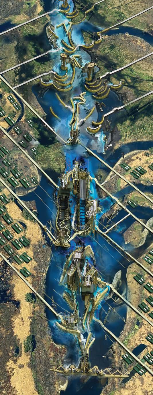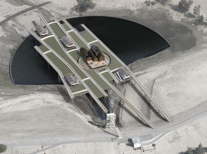 independent long-term use for the mined site. The resulting landscape typology is a hybrid of technological systems and a familiar natural environment.