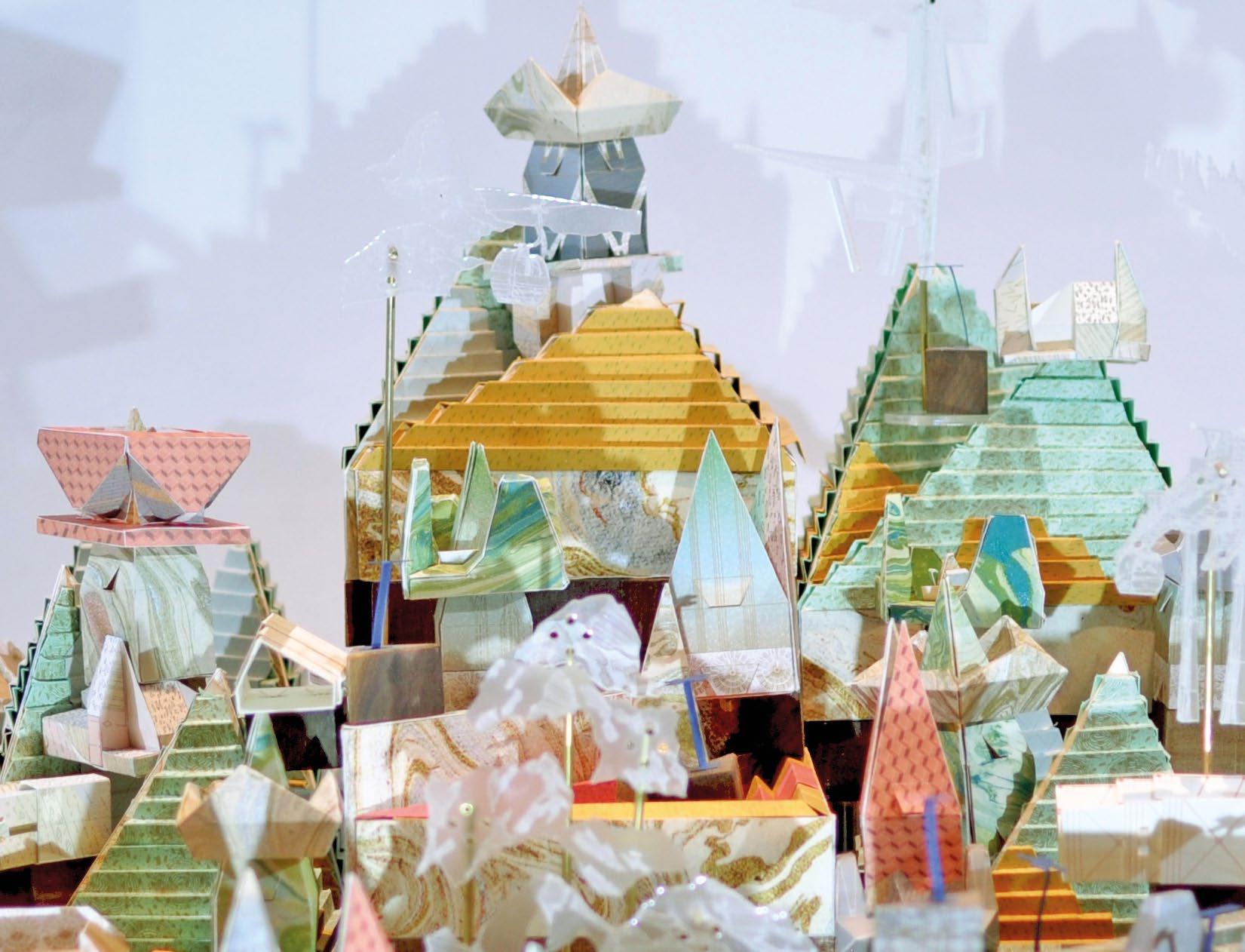 Fig. 11.4 Jon Kaminsky. Powered Parkland: The Museum of Steam. The parkland exposes the hidden infrastructure of NYC’s district steam system providing an alternative to the city’s extreme seasonality via tempered microclimates that smooth the winter climate at varying speeds. Warm areas are incorporated for the growth of tropical and unseasonal plants and crops, as well as warm lawns, heated bathing pools and walkways. Fig. 11.5 Sonila Kadillari. Studies for a Blackout City. This model explores how darkness can be used to reveal and how light can hide. Studies for Madison Observatory celestial viewing corridors. Fig. 11.6 Tom Partridge. The Manhattan Air Spa. Test model for an activated air-landscape, driven by the thermal vortices that form around tall buildings showing the flotation of elements. Fig. 11.7 Harriet Redman. The Lock Inn,