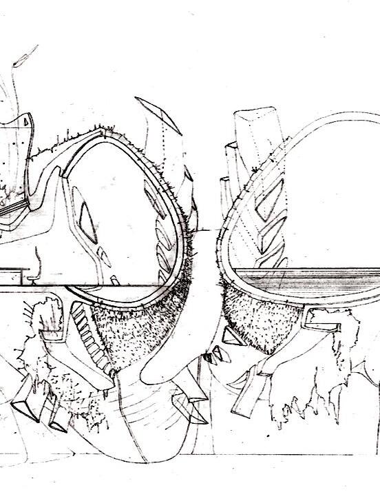 Fig. 11.11 Alexandra Banksie Critchley, Y5, Living on Unstable Ground, Florida’s Sinking City, Crushed Long Section. The unstable geology of West-Central Florida frequently gives rise to a phenomenon known as sinkholes. Entire buildings can be swallowed by the ground, putting lives at risk. The proposed domestic architecture has been designed to survive their occurrence by means of a frictional dissipative steel structure, a sacrificial crumple zone and a tuned liquid damper Fig. 11.12 Harriet Redman, Y5, Citrus Survival Centre, Plan of the Pathogen Testing Lab. Florida’s citrus industry is in a state of emergency, Citrus Canker and Greening diseases were first found in 1995 and have since spread statewide. Eradication is no longer possible. The Citrus Survival Centre employs varying levels of quarantine to create intentionally infected and sterile