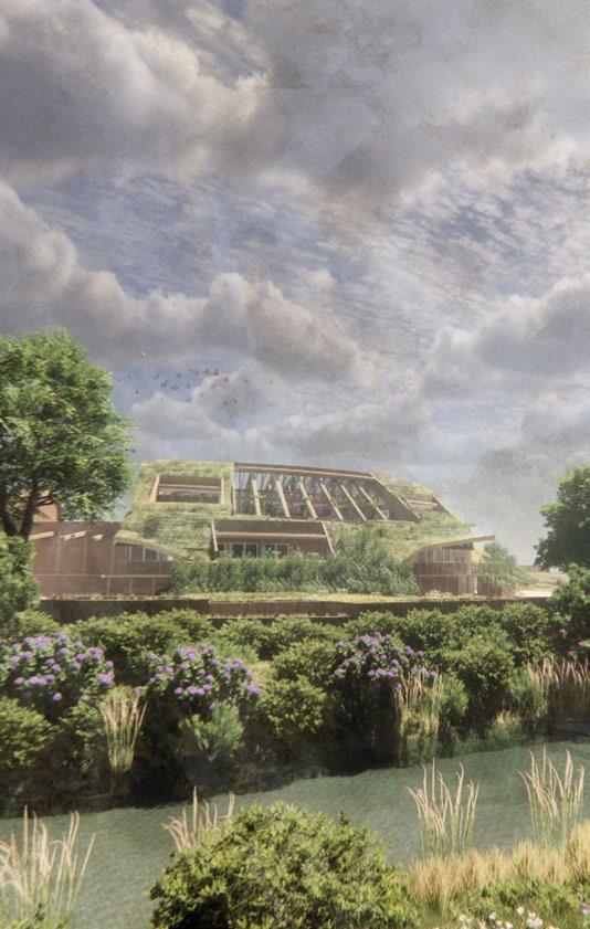 11.4 Sharon Tam, Y5 ‘Neutral Waters’. In an era marked by geopolitical tensions, ‘neutrality’ represents a peaceful and pragmatic approach to navigating the complexities of global discord. Neutral Waters transforms Foulness Island into a neutral venue for international conferences that crave a landscape for the pursuit of common ground. The design serves as a canvas for the synthesis of opposites, inviting delegates to walk its paths, where each step embodies negotiation and moderation.