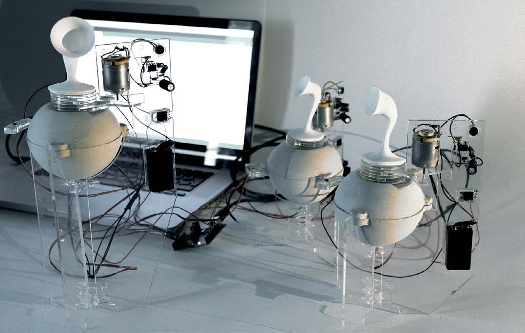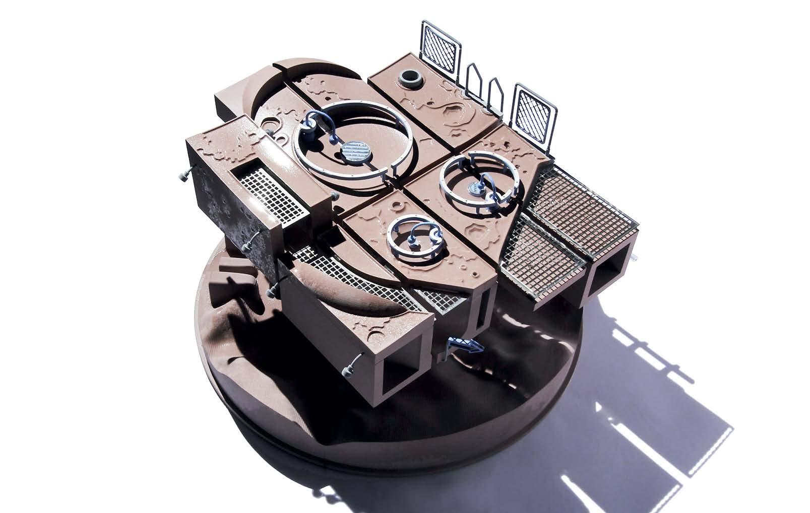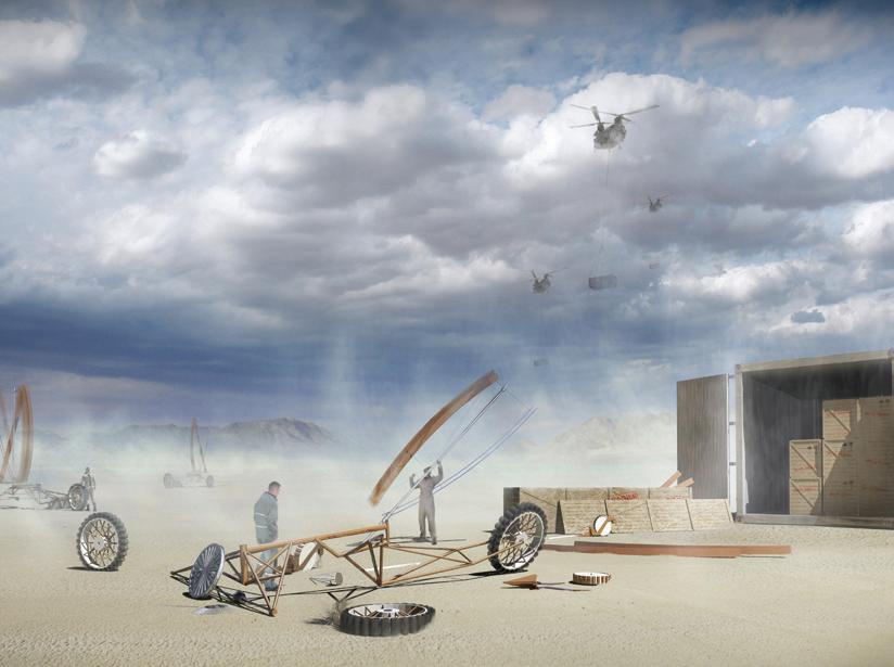 placement sites in the form of mountainous pastoral landscapes in the urban sprawl Fig. 11.6 Spencer Treacy Shangri-la in Shittesville, Compton, Los Angeles, aims to amalgamate the residential with industrial, olfactory with visual, philosophical with financial and the urban with agricultural Located on the site of a decommissioned brick quarry The ‘Olfactory Factory’ combines the process of waste water treatment works with an urban residential scheme Fig. 11.7 Theodore Games Petrohilos The Petrol Powered Music Exploring Machine ‘Barry’ explores the streets of Los Angeles powered by the engines that pollute the city It attempts to overcome the lack of tactility that comes with an automobile-obsessed city and thrives off the touch of Los Angelenos Fig. 11.8 Victor Hadjikyriacou ‘Anemos’ Wind Scanning Device, Owens Lake, CA An unmanned device harnesses the wind energy from the