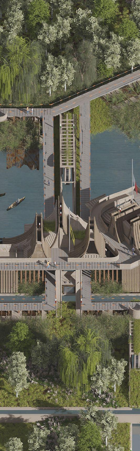 3 Lavinia Fairlie, Y5 ‘Reviving the Hidden Confluence’. This project envisions a regenerative infrastructure where the Tiber and Aniene rivers meet, integrating architecture, ecology and water management to reframe the river as a vital cultural and ecological system.