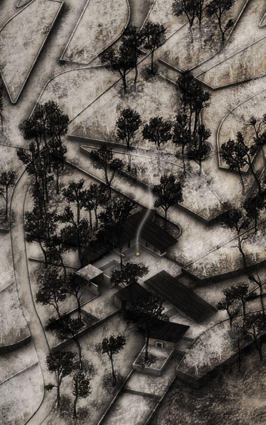 17.13 Georgie Stephenson, Y4 ‘Born From Ashes’. Influenced by recent effects of deforestation, Sicily‘s dramatic climate has led to numerous wildfires spreading across the region. At the heart of Monte Pellegrino, the project bridges the often blurred boundaries between architecture, landscape and fire. Reflecting the revival of the fire-damaged forest, the project illuminates the potential timber architecture can have in wildfire-prone areas, reimagining the fire to protect and preserve.