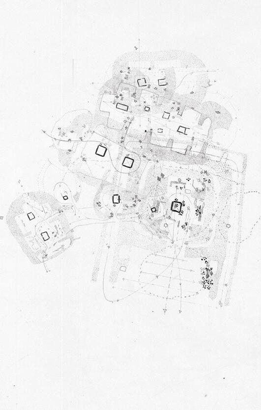 9–10 Peter Holmes, Y5 ‘Another’s Yard’. A scored masterplan for housing on the site of an existing builder’s yard acknowledges the inevitable co-authorship of design, while considering what we are willing to live alongside.