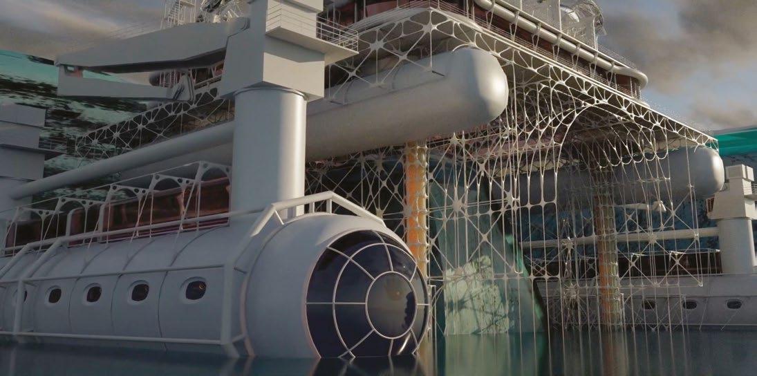 4 Robert Gowing, Y4 ‘Finfrastructure: Post-Global Fishing’. A marine infrastructure born from hardship imposed by the advances of globalisation. The architecture reflects procedural systems and the castaway urban fabric.